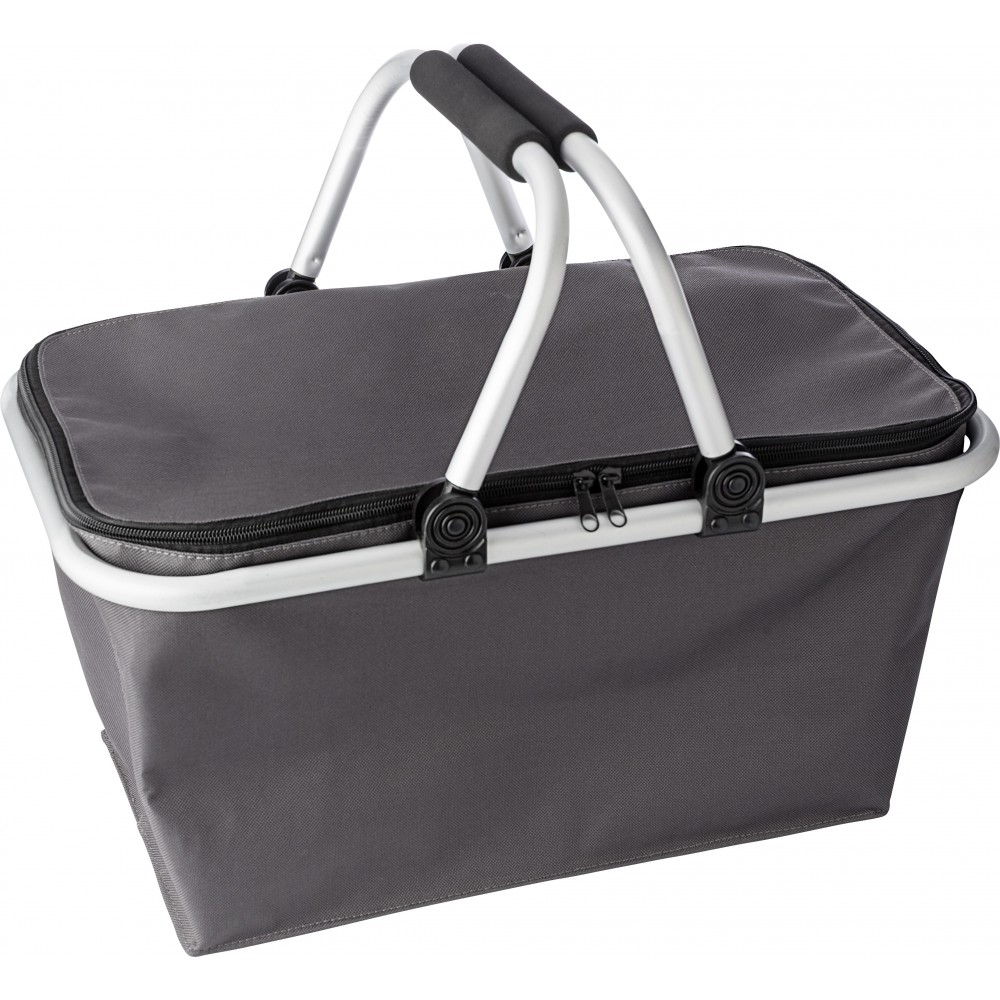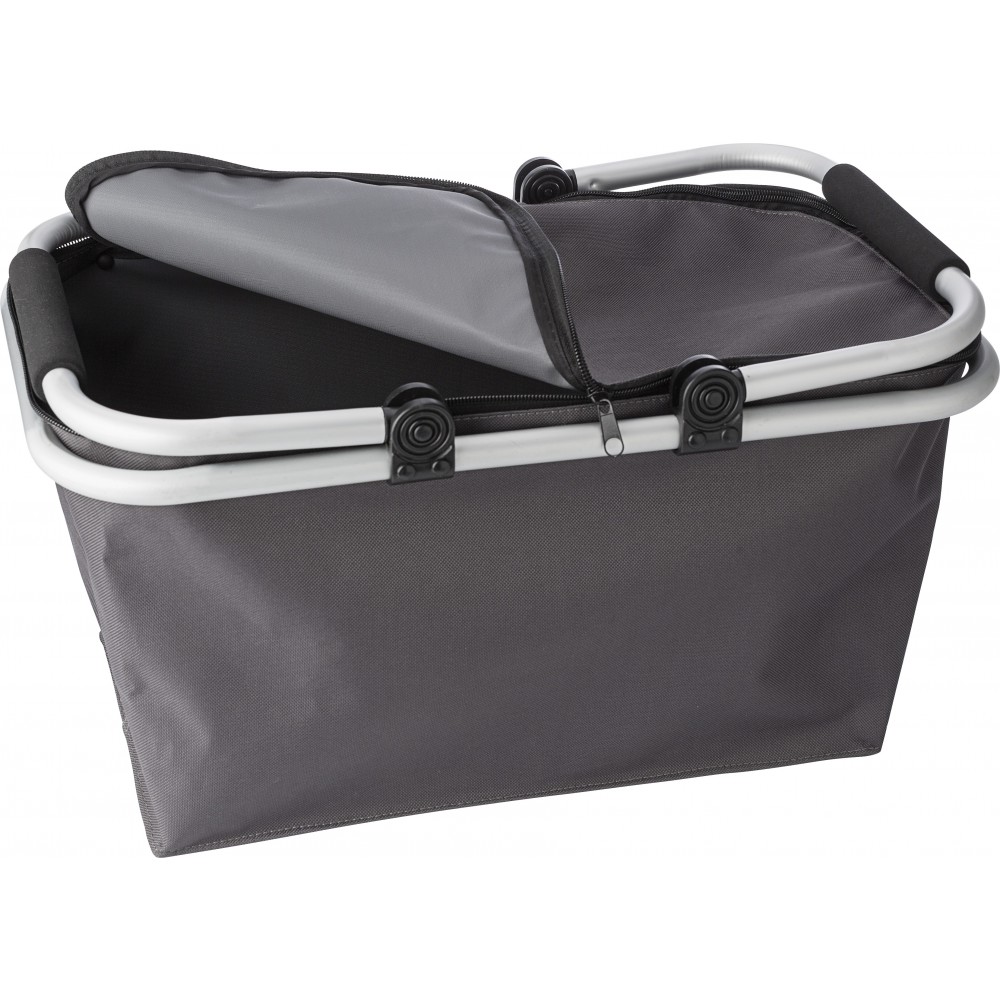 Bevásárlókosár. Összecsukható bevásárlókosár cipzáros záródással, alumínium vázzal, EVA fogóval, Oxford anyagból. Emblémázás: Szitanyomás