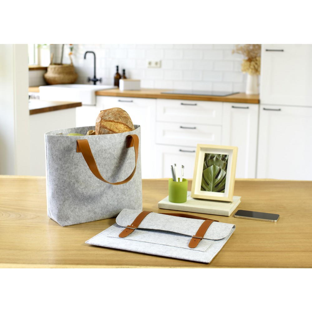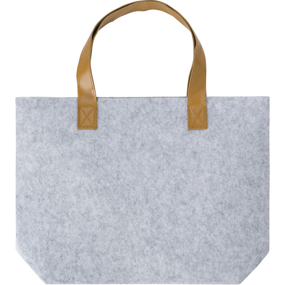 RPET filc bevásárlótáska PU fogantyúkkal. Egy nagy rekesz. Emblémázás: Hímzés, Szitanyomás