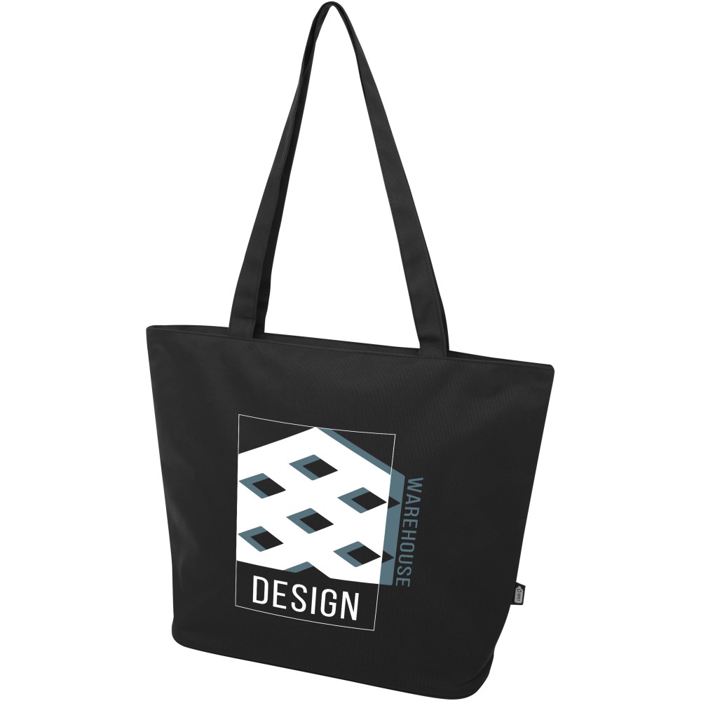 A vízlepergető 600D rPET anyagból készült Panama GRS újrahasznosított cipzáras táska tökéletes és fenntartható választás, ha rendezvényre, strandra vagy bevásárlásra készülsz. Egy cipzáras főrekesszel és egy cipzáras belső zsebbel rendelkezik, amely elég nagy a telefonod vagy más értékes holmi tárolására. Fülei 34 cm hosszúak, ezért a táska könnyen hordozható vállon. Teherbírás: 10 kg. PVC-mentes. Emblémázás: Szitanyomás