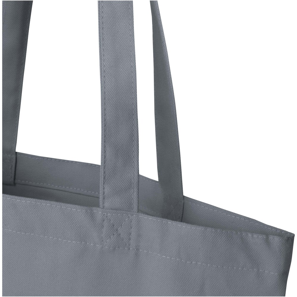 A Florida vászontáska 100%-ban GRS tanúsítvánnyal rendelkező, 270 g/m2 súlyú újrahasznosított pamutból készült, amely tartós választást biztosít mindennapi használatra. Széles aljú kialakítása extra helyet nyújt a szükséges dolgok számára, legyen szó bevásárlásról vagy hétköznapi programokról. Fülek hossza: 30 cm. Űrtartalma: 10 liter. Emblémázás: Szitanyomás