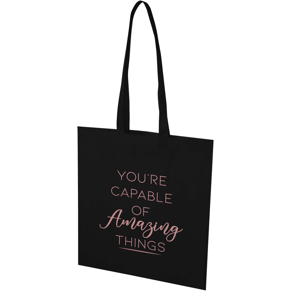 Az EcoSeal GRS tanúsítvánnyal rendelkező, újrahasznosított bevásárlótáska tartós és szakadásálló RPET anyagból készült. Ultrahangos hőhegesztéssel készült, varrásmentes kivitelben, stancolt fülekkel. A 30 cm hosszú fülek kényelmes hordozást biztosítanak. Könnyű, mégis erős szerkezete akár 5 kg súly hordozására is alkalmas. Ideális mindennapi használatra, vásárokra vagy promóciós ajándékként. Űrtartalom: 6 liter. Emblémázás: Szitanyomás
