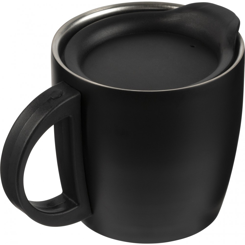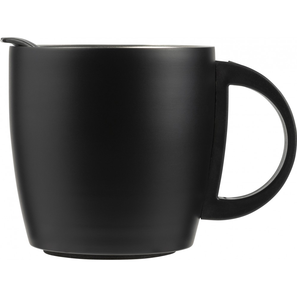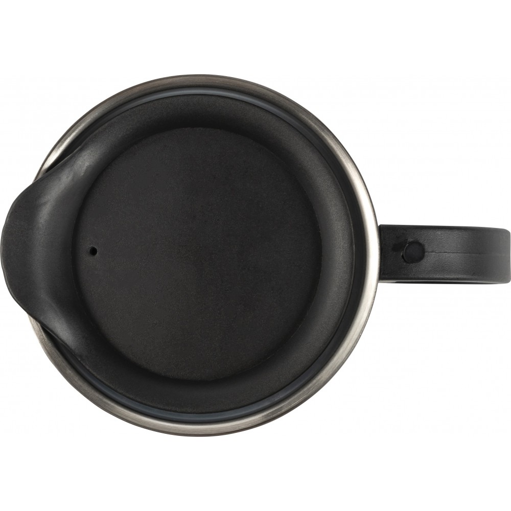 Duplafalú bögre a talpán csúszásmentes felülettel. Űrtartalom: 350 ml. Rozsdamentes acél és BPA-mentes műanyag. Nem szivárgásmentes és nem mosogatógépálló termék. Emblémázás: Gravírozás, Tamponnyomás