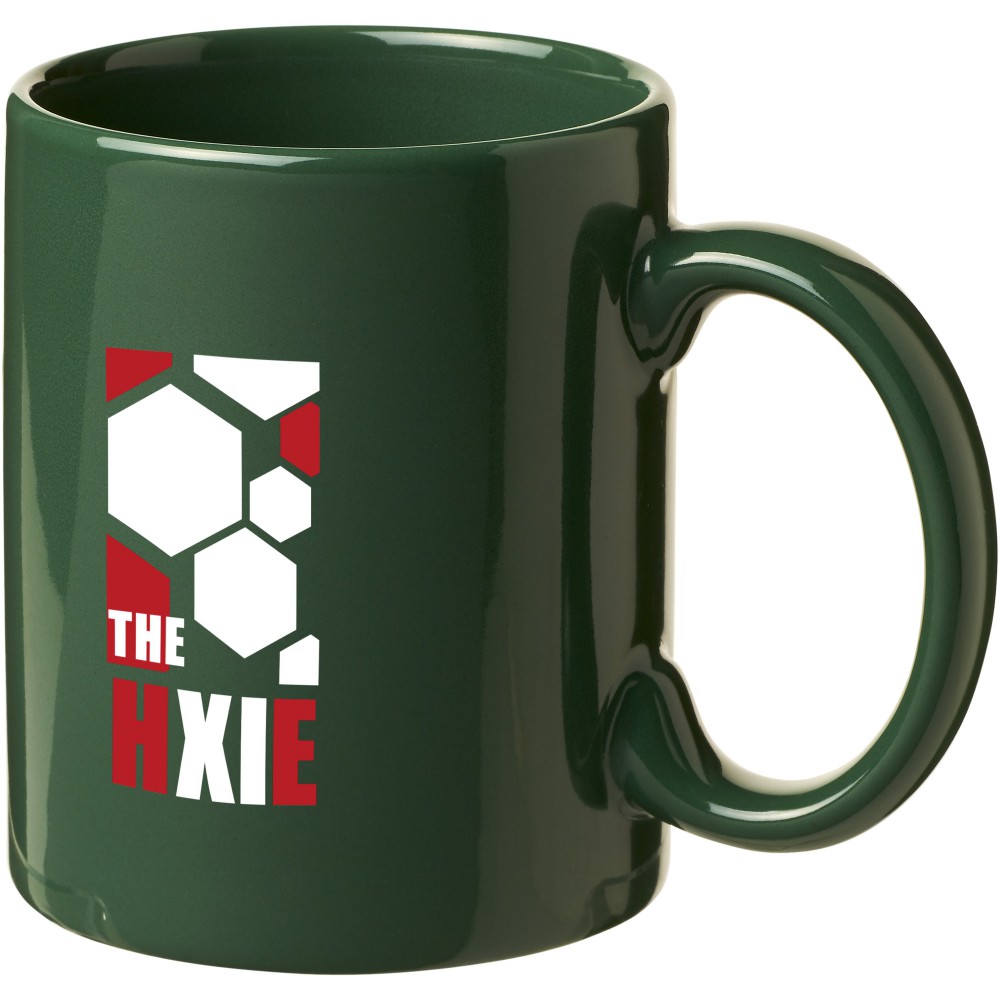 Klasszikus 330 ml-es kerámia bögre. Nem szivárgásmentes. Szénsavas italokkal is használható. Mosogatógépben mosható és mikrohullámú sütőben történő melegítésre alkalmas. Fehér kartondobozban szállítjuk. Emblémázás: Bögredekor