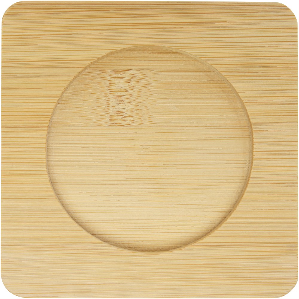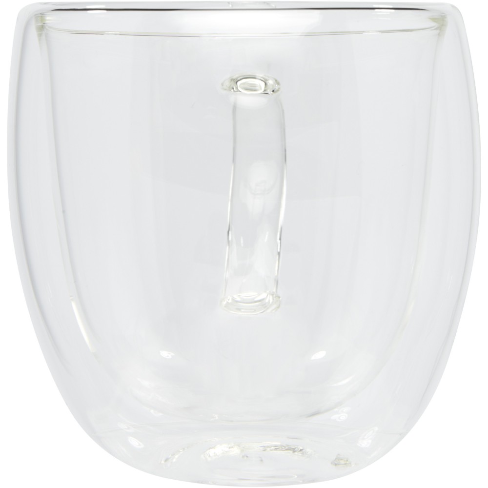 2 db-os duplafalú, hőkezelt üveg kávéskészlet bambusz alátéttel. A bambusz fenntartható, környezeti és társadalmilag felelős forrásokból származik. A dupla boroszilikát üvegnek köszönhetően az ital hőmérséklete hosszú ideig megmarad. Űrtartalma 250 ml. Alátét mérete: 10 x 10 x 1 cm. Boroszilikát üveg, bambusz. Mosogatógépben nem tisztítható. Emblémázás: Gravírozás, Tamponnyomás