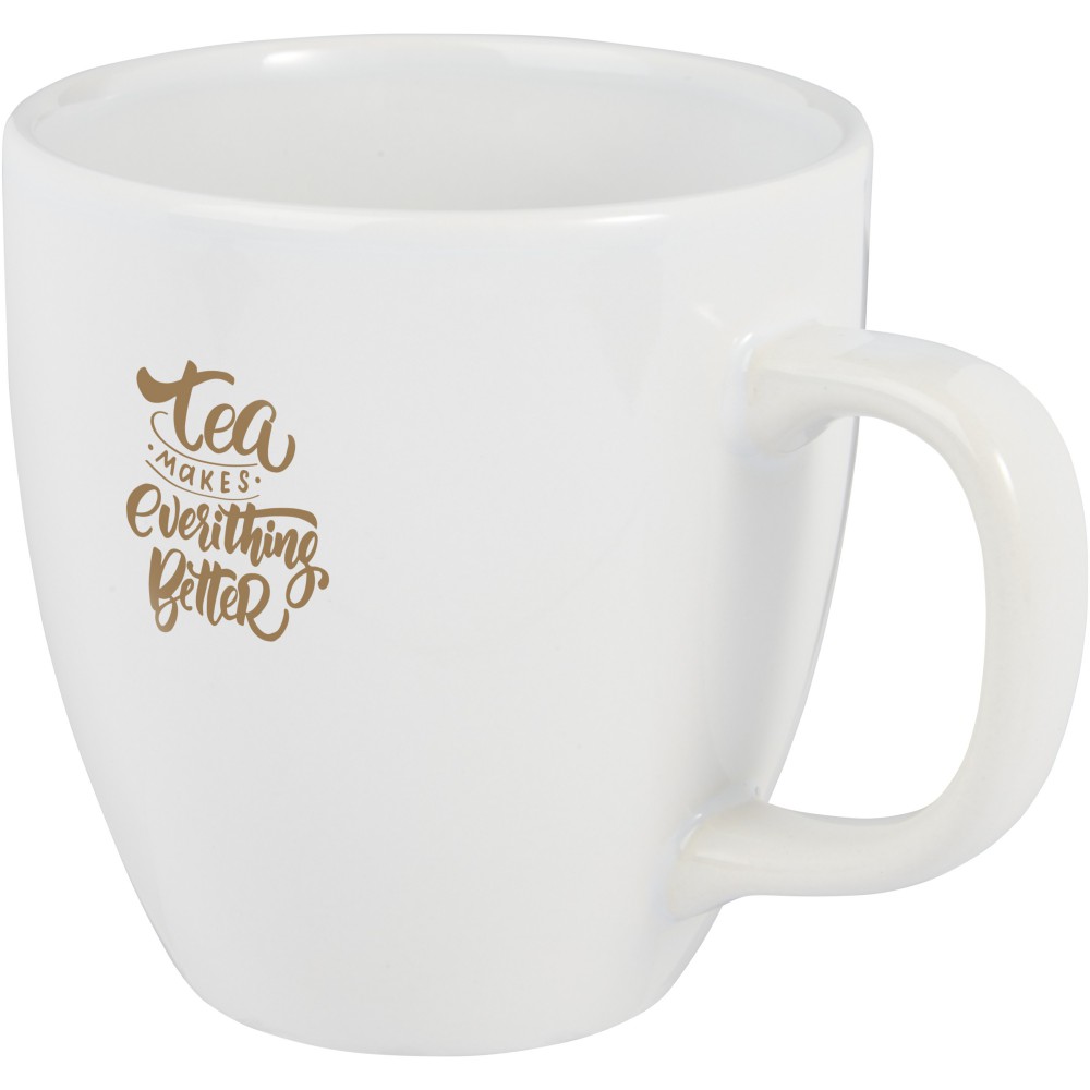 A Moni kerámia bögre divatos fényes felülettel rendelkezik, amely elegáns megjelenést kölcsönöz. A nagy fül kényelmes és erős fogást biztosít. A bögre elég sokoldalú ahhoz, hogy meleg és hideg italokhoz is használható, így kávét, teát, levest és sok mást is élvezhet. Űrtartalma 430 ml. Mosogatógépben mosható. Újrahasznosított karton díszdobozban. Kerámia. Emblémázás: Bögredekor