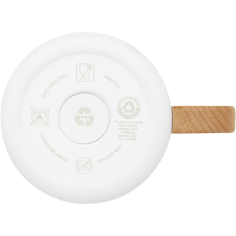 A Bjorn bögre RCS tanúsítvánnyal rendelkező, újrahasznosított rozsdamentes acélból készült, a fogantyú pedig felelősségteljesen előállított bükkfából. A bögrében lévő réz vákuumszigetelés segít abban, hogy az italok hosszú ideig ideális hőmérsékleten maradjanak. Ez a bögre nagyszerű alternatívája a hagyományos bögréknek, amelyet úgy terveztek, hogy segítsen megakadályozni a hőátadást a bögre külsejére. A német élelmiszer-biztonsági jogszabályok (LFGB) szerint tesztelt és jóváhagyott, valamint a REACH szerint ftalát-tartalomra vonatkozóan tesztelt termék. Űrtartalom: 360 ml. BPA-mentes. Emblémázás: Gravírozás