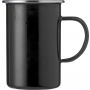 Zománcozott bögre rozsdamentes acél peremmel. Űrtartalom: 450 ml. Csomagolása barna kartondoboz. Emblémázás: Bögredekor, Tamponnyomás