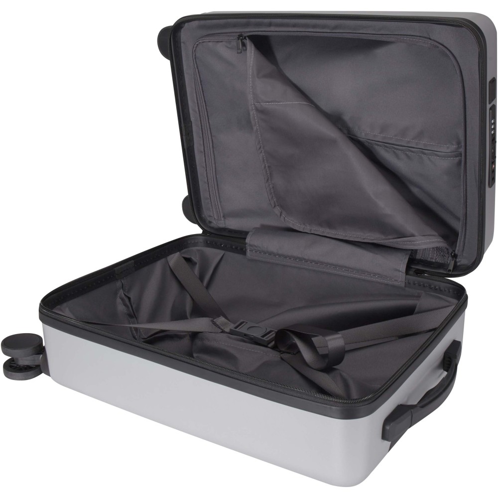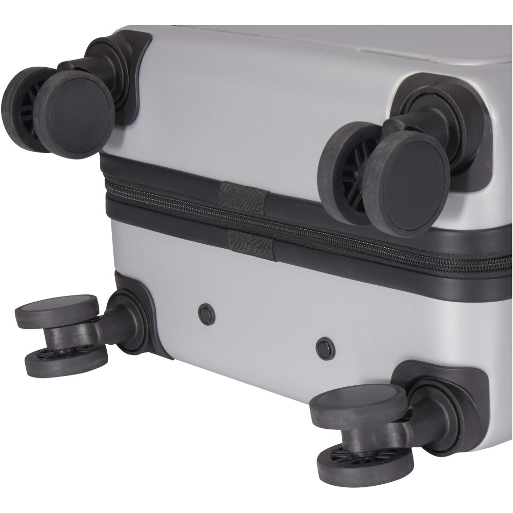 A Rover Pro 20 kabinbőrönd kiemelkedik elöl nyitható, 20 -os laptoprekeszével és beépített USB töltőportjával, így tökéletes útitárs üzleti és szabadidős utazásokhoz egyaránt. Ütésálló, GRS tanúsítvánnyal rendelkező újrahasznosított műanyagból készült, minőségi RPET béléssel. Az elöl nyitható laptoprekesz rendszerező zsebekkel van ellátva elektronikai kiegészítők számára, illetve a főrekesz és a laptoprekesz is TSA számzárral zárható. A bőrönd 360 fokban forgó dupla kerekekkel rendelkezik a repülőtereken történő mozgatás megkönnyítése érdekében. A legtöbb légitársaság kézipoggyászként elfogadja. Emblémázás: