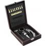 Boroskészlet sakk-készlettel. Üvegdugó, cseppfogó, borhőmérő, pincérbicska. Emblémázás: Gravírozás, Tamponnyomás