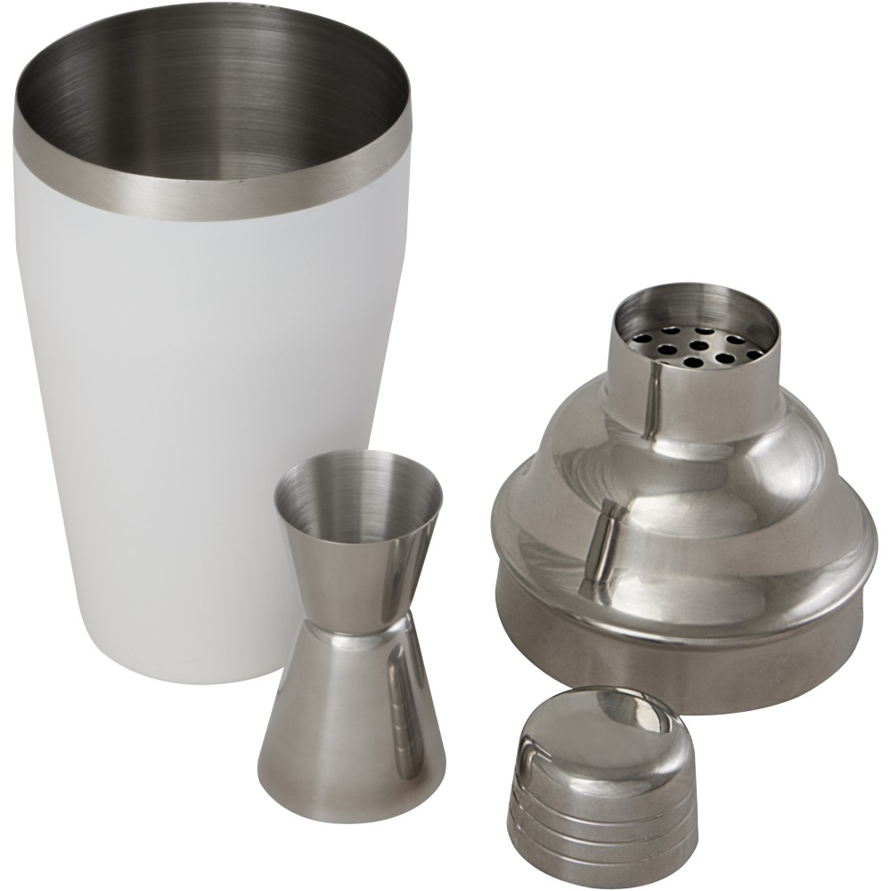 Újrahasznosított rozsdamentes acélból készült koktélkeverő, amely fenntarthatóbb alternatívát jelent a hagyományos koktélkeverőkkel szemben. Az újrahasznosított rozsdamentes acélból készült koktélkeverő használatával úgy élvezheti kedvenc koktéljait, hogy közben pozitív hatást gyakorol a környezetre. A shaker mérete: 21,2 x 8,8 cm. Jigger mérete: 3,5 x 4,1 x 7 cm. Mosogatógépbe vagy mikrohullámú sütőbe tenni nem alkalmas. Újrahasznosított zacskóba csomagolva, majd újrahasznosított kraftpapír dobozba helyezve. Emblémázás: Gravírozás, Tamponnyomás