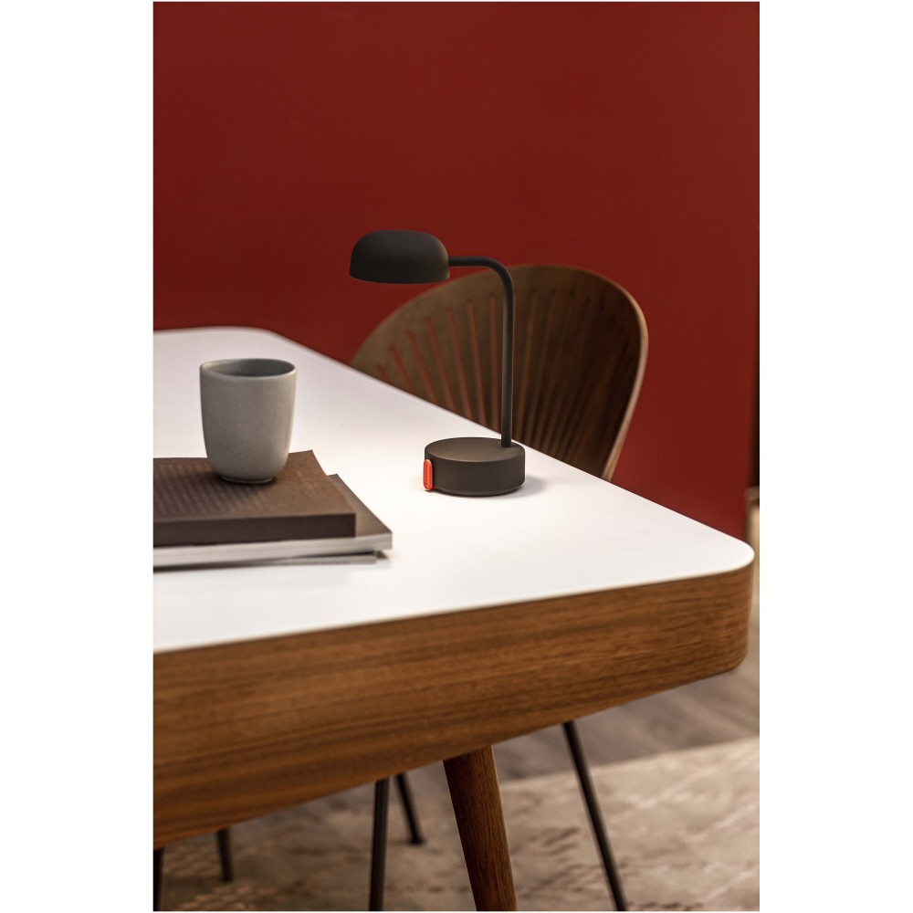 A Kooduu Fokus egy elegáns, újratölthető asztali lámpa, amely közvetlen, fókuszált fényt biztosít, fényereje pedig igény szerint állítható. Tökéletes választás tanuláshoz vagy munkához, de ideális hangulatot teremt pihentető tevékenységekhez is, például naplóíráshoz, rajzoláshoz vagy olvasáshoz. A 0?100%-os fokozatmentes dimmer lehetővé teszi a fényerő pontos beállítását, míg a 2700K színhőmérséklet kellemes, meleg fényt ad a kényelmes használathoz. A 83 lumenes fényerő hatékony megvilágítást nyújt anélkül, hogy vakító lenne. A beépített, 4000 mAh kapacitású akkumulátor akár 40 órányi működést biztosít, a mellékelt USB töltődokk pedig még kényelmesebbé teszi a használatot. Emblémázás: Gravírozás, Tamponnyomás