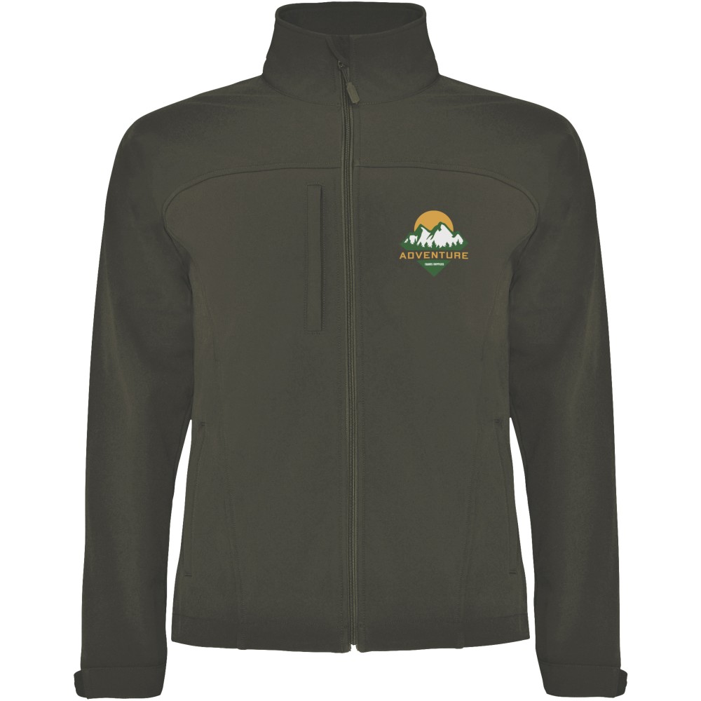 3 rétegű softshell dzseki. Cipzáros külső zsebek a mellkason és oldalt. Állítható kézelők. Szegélyén gumis zsinór belülről állítható megállítógombbal. 1000 mm vízálló. Szélálló. 95% poliészter és 5% elasztán, 300 g/m2, préselve 100% poliészter mikropolárral. Emblémázás: Hímzés, Szitanyomás