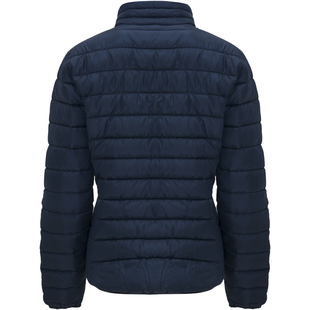 Női, karcsúsított, steppelt dzseki tollszerű tapintású töltettel, tasakkal. Fordított cipzárak, színben illeszkedő állvédővel és cipzárral. Két cipzáras elülső zseb. Gumis szegély a galléron, a kézelőn és az aljon. Kontrasztos színű bélés. Könnyű és összehajtható ruhadarab. Vízálló. Szélálló. 100% poliészter, 290 g/m2. Bélés és töltet: 100% poliészter. Emblémázás: Hímzés