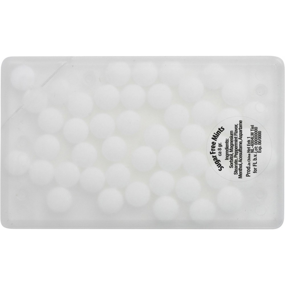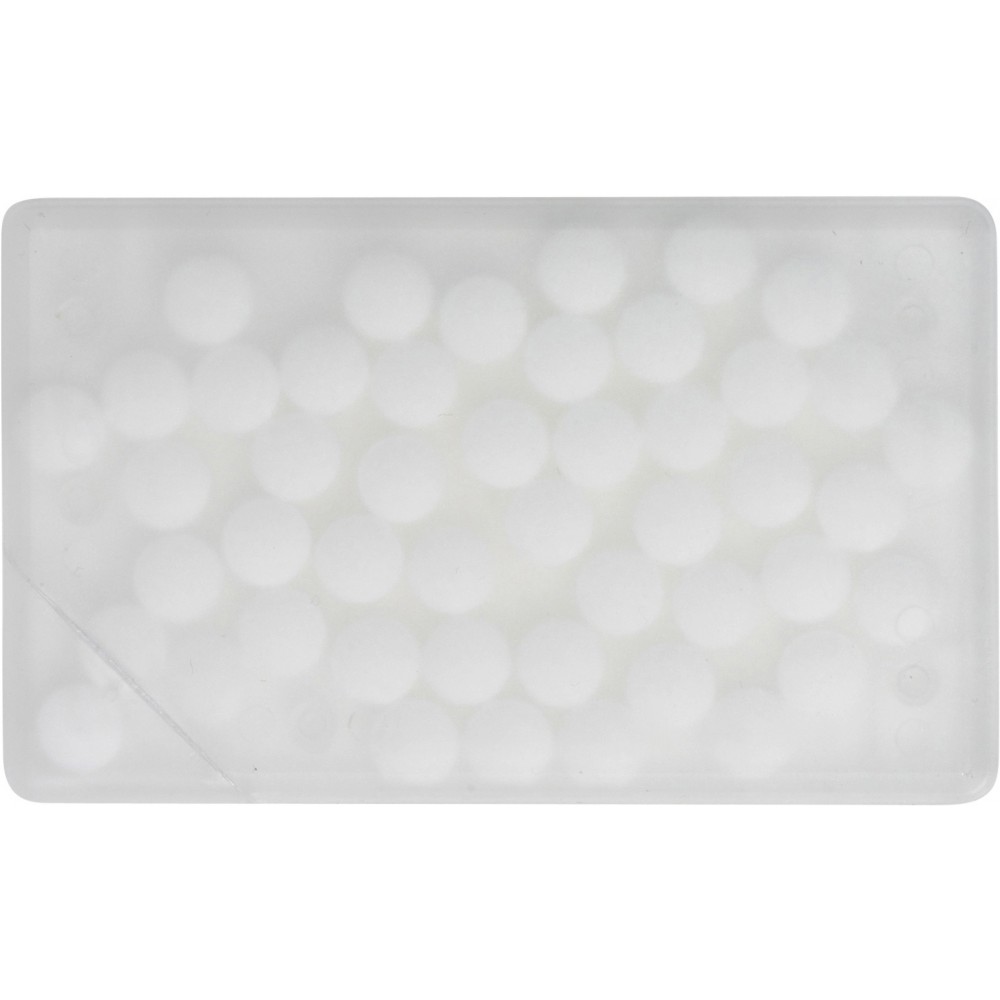 Mentolos cukorka műanyag dobozkában. Kb. 50 db cukormentes mentolos cukorkát tartalmaz. Emblémázás: Tamponnyomás, UV nyomtatás