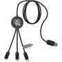3 az 1-ben újrahasznosított PET világító logóval ellátott meghosszabbított töltőkábel kerek bambusz burkolattal. A világító logó mindkét oldalán látható. 3 csatlakozóval (C típusú, micro USB, iPhone) és kettős USB csatlakozóval rendelkezik az univerzális használatra. TPU tasakban, nátronpapír kártyával szállítjuk. Kábel hossza: 1 méter. Emblémázás: Gravírozás