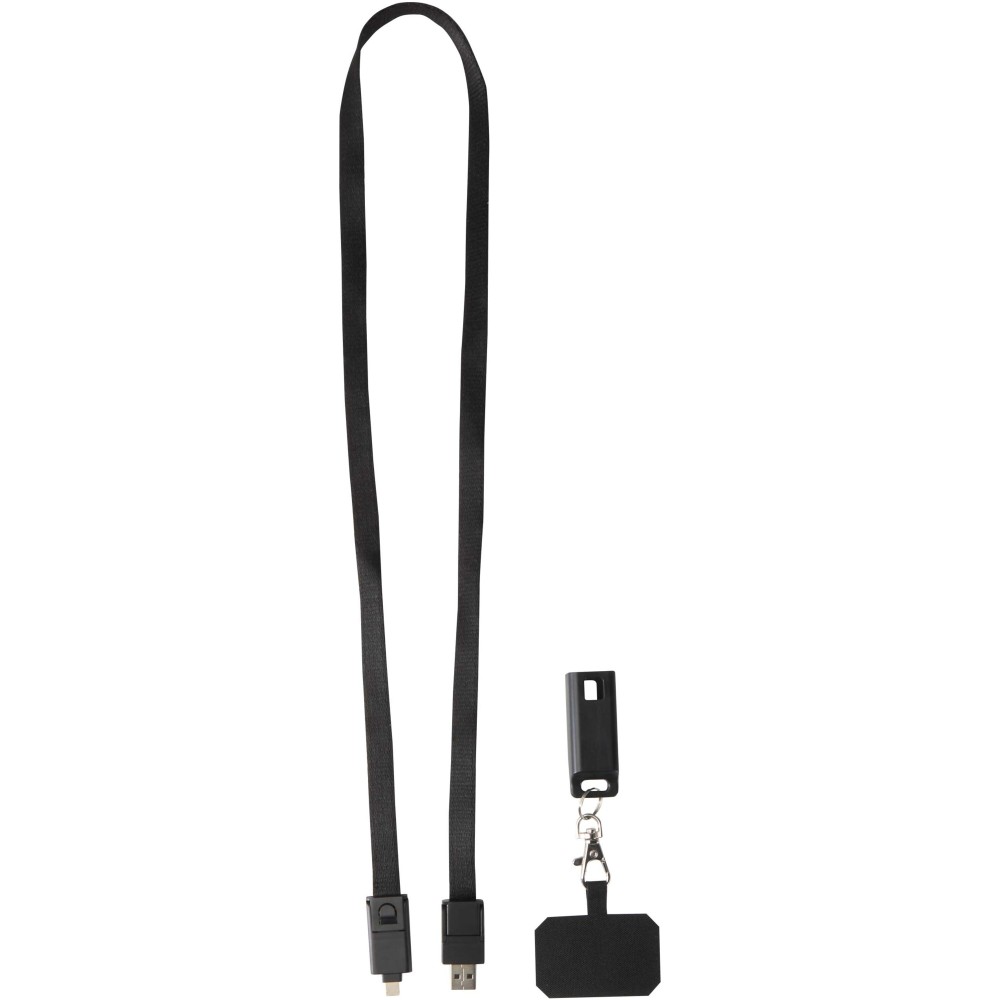 A Franz okostelefon nyakpánt újrahasznosított műanyagból készült, és beépített, 65W teljesítményű 5 az 1-ben töltőkábellel rendelkezik, amely Type-C és USB-A bemeneti, valamint Type-C, Lightning és microUSB kimeneti csatlakozókat kínál. Ez a kábel elég erős ahhoz, hogy a legtöbb laptopot, tabletet és okostelefont gyorsan feltöltse. Kompatibilis a CarPlay és Android Auto rendszerekkel, így ideális utazáshoz, munkához vagy mindennapi használatra. Emblémázás: Szitanyomás, Tamponnyomás
