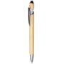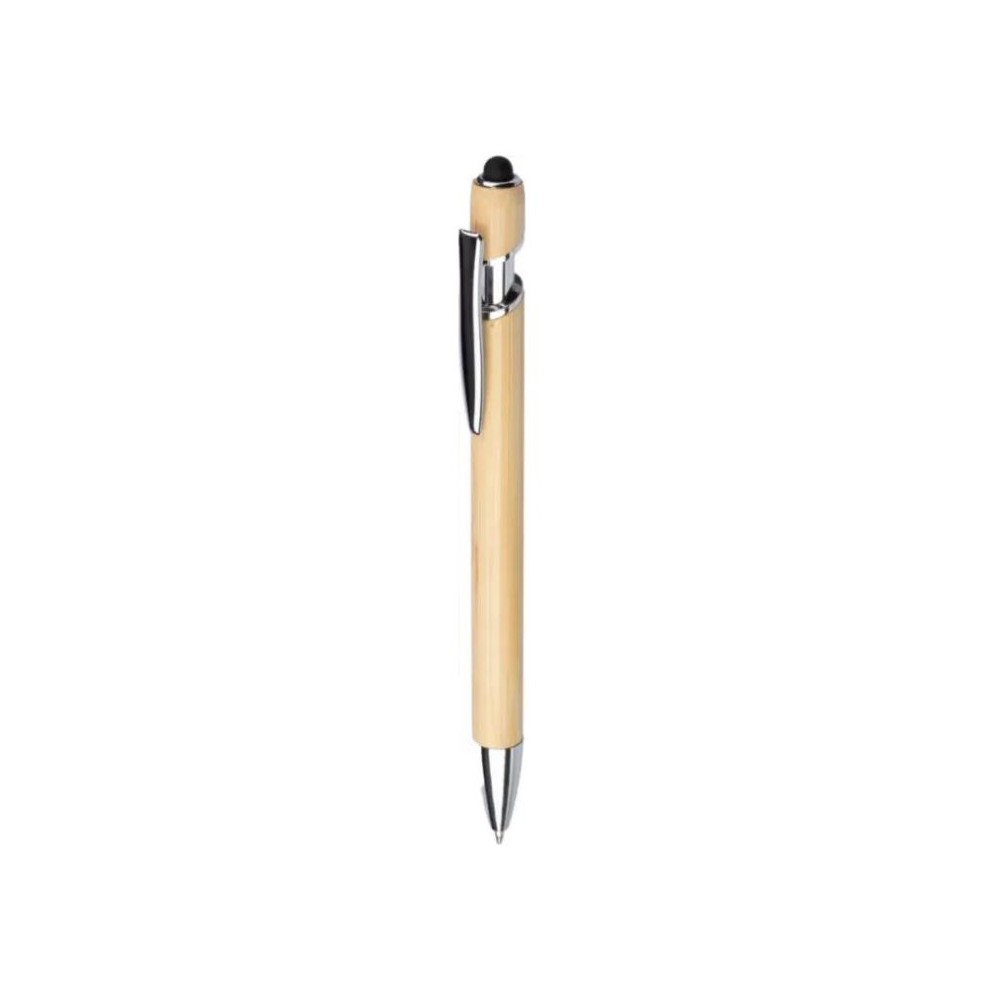 Bambusz golyóstoll érintővel és fém klipsszel. Kék tollbetéttel. Emblémázás: Gravírozás, Tamponnyomás