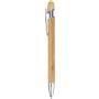 Bambusz golyóstoll krómozott fém részletekkel. Krómozott műanyag tollheggyel és fém klipsszel. Színes érintő a nyomógombon. Kb. 800 méter íráshossz. Kék tollbetéttel. Emblémázás: Tamponnyomás, UV nyomtatás