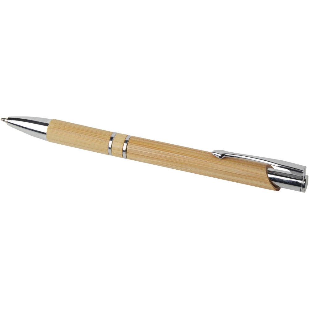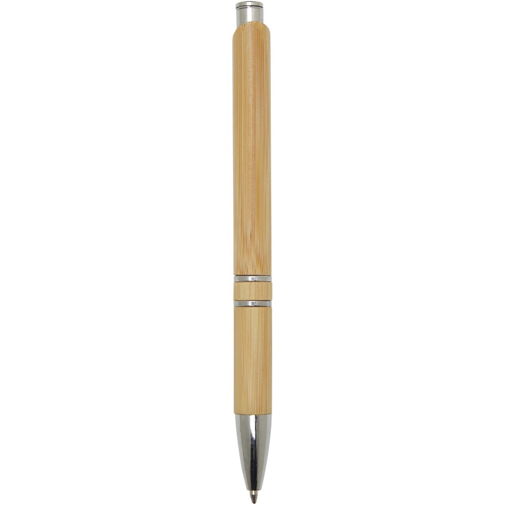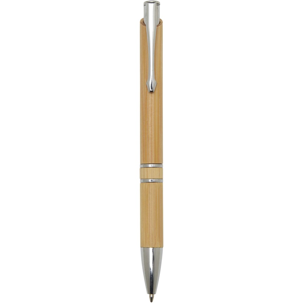 Ez a golyóstoll bambuszból készült, amely elegáns és fenntartható írásélményt biztosít. Tinta színe: fekete. Íráshossz: 1000 méter. Tollhegy mérete: 1 mm. Emblémázás: Gravírozás, Tamponnyomás