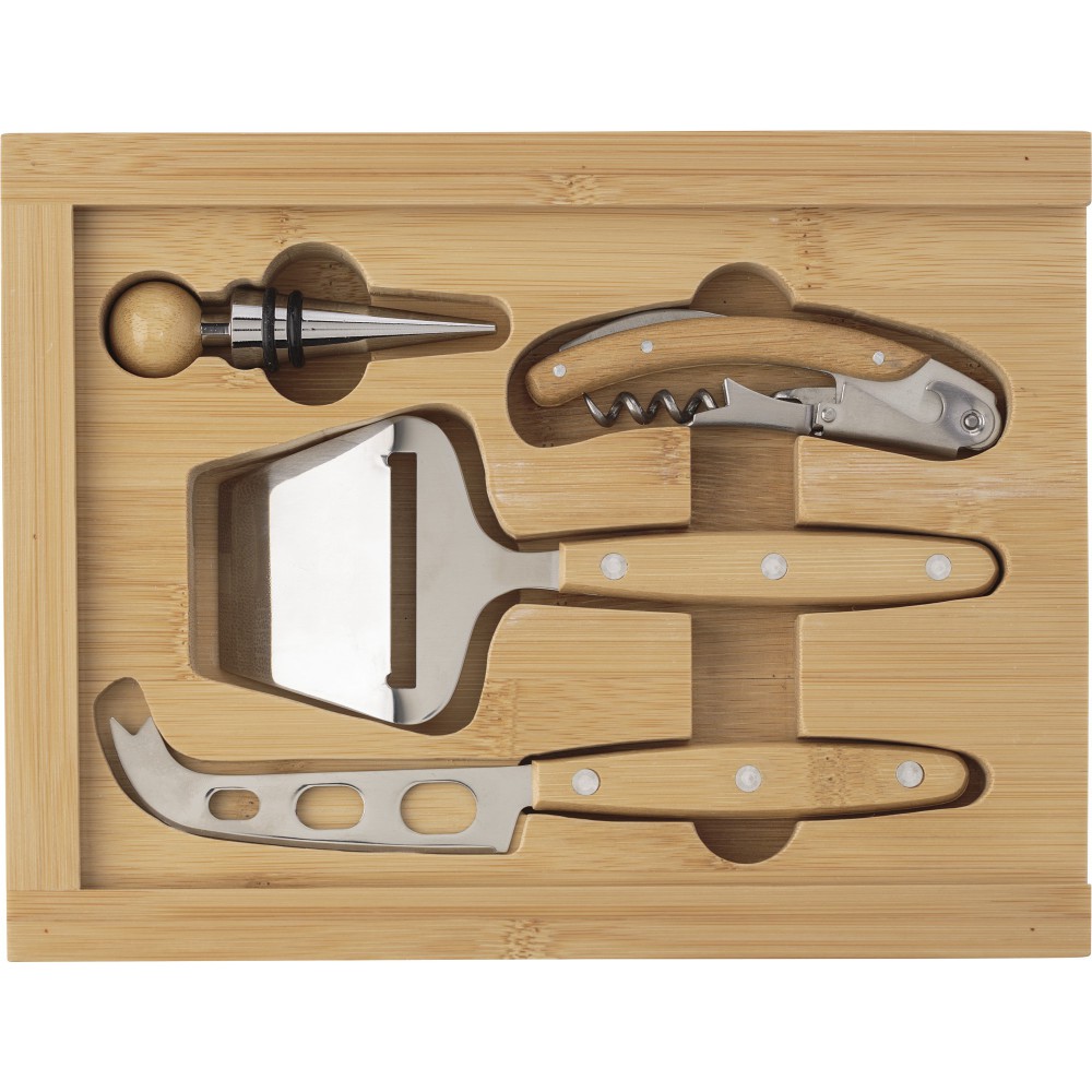 Bambusz sajtos- és boroskészlet