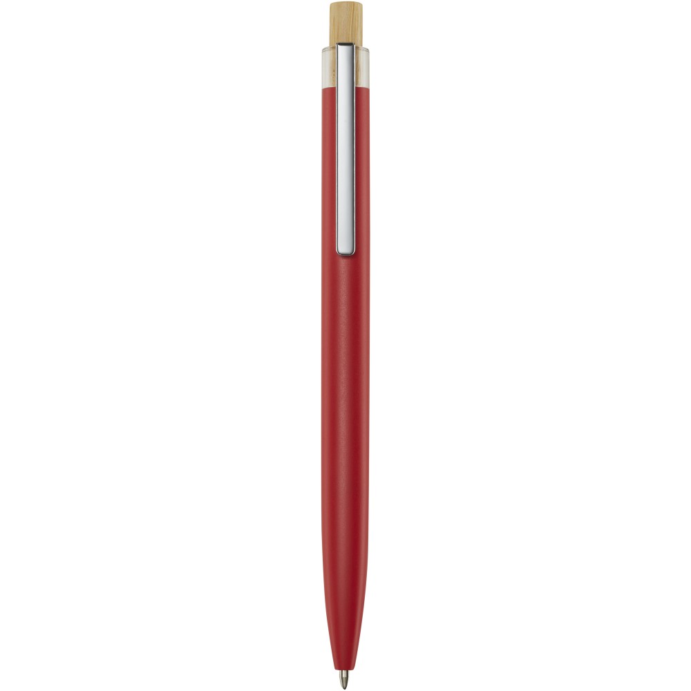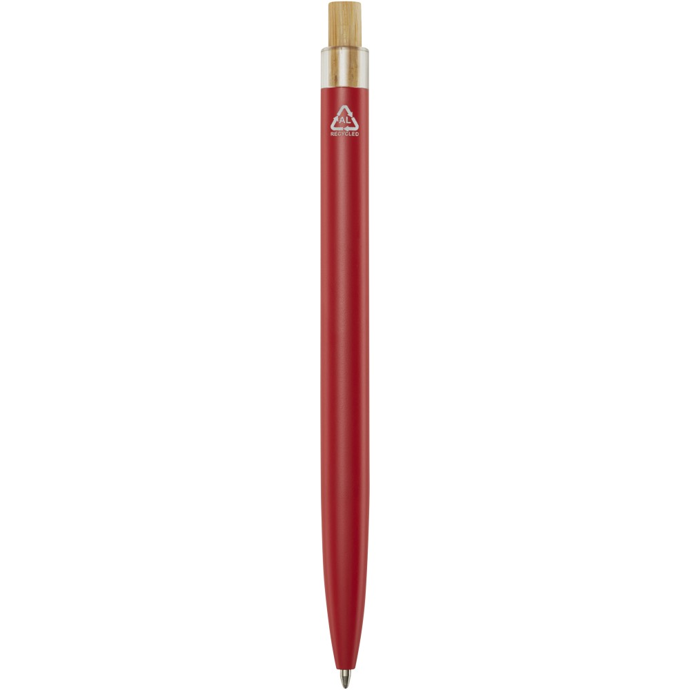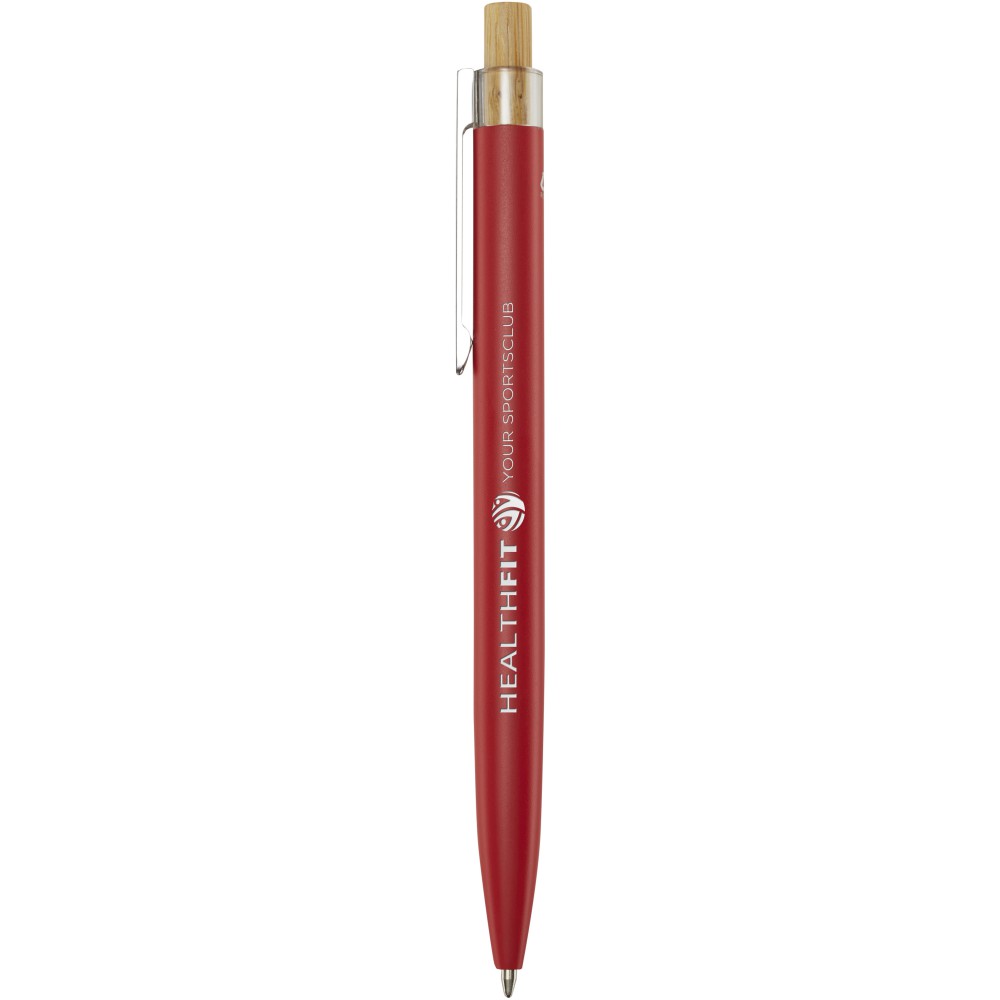 A Nooshin golyóstoll újrahasznosított alumíniumból készül, ami kevesebb energiát igényel, mint az alumínium nyersanyagból történő előállítása. Emellett csökkenti a hulladéklerakókba kerülő hulladék mennyiségét és hozzájárul a természeti erőforrások megőrzéséhez, amelynek célja az üvegházhatású gázok kibocsátásának csökkentése. A nyomógomb bambuszból készült. Tollbetét színe: kék. Íráshossz: 800 méter. Tollhegy mérete: 1,00 mm. Emblémázás: Gravírozás