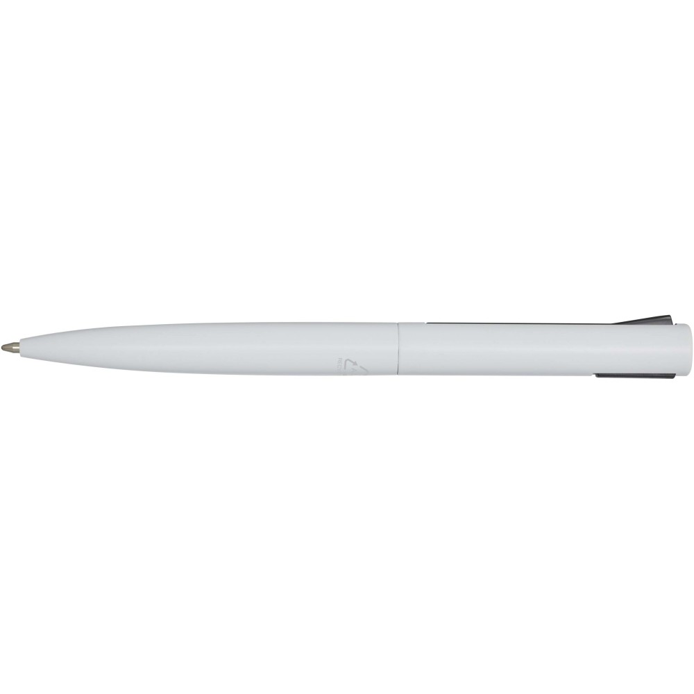 Golyóstoll, melynek felső teste újrahasznosított műanyagból, alsó része pedig újrahasznosított alumíniumból készült. A klipsz vasból készült. Kék tollbetéttel. Írási hossz: 1000 méter. Hegyméret: 1,0 mm. Emblémázás: Gravírozás