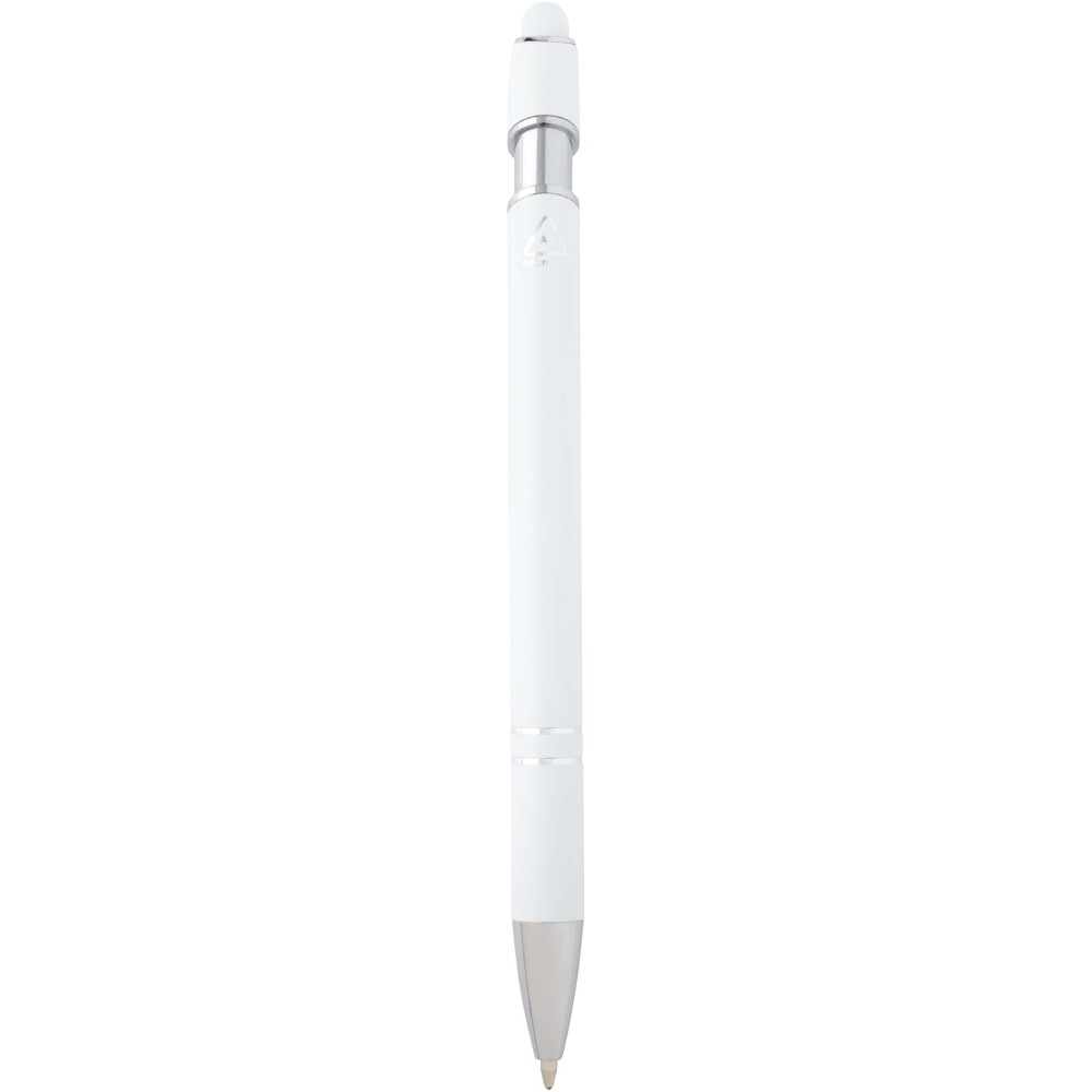 Kish golyóstoll ezüst színben. A toll teste újrahasznosított alumíniumból, az érintőceruza pedig szilikonból készült, így érintőképernyős eszközökhöz is használható. Az újrahasznosított alumínium csökkenti a hulladéklerakók terhelését, segít megőrizni a természeti erőforrásokat, és célja az üvegházhatású gázok kibocsátásának mérséklése. Tinta színe: kék. Íráshossz: 800 méter. Tollhegy mérete: 1,0 mm. Emblémázás: Gravírozás, Tamponnyomás