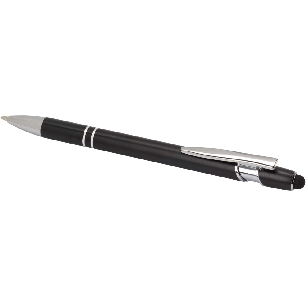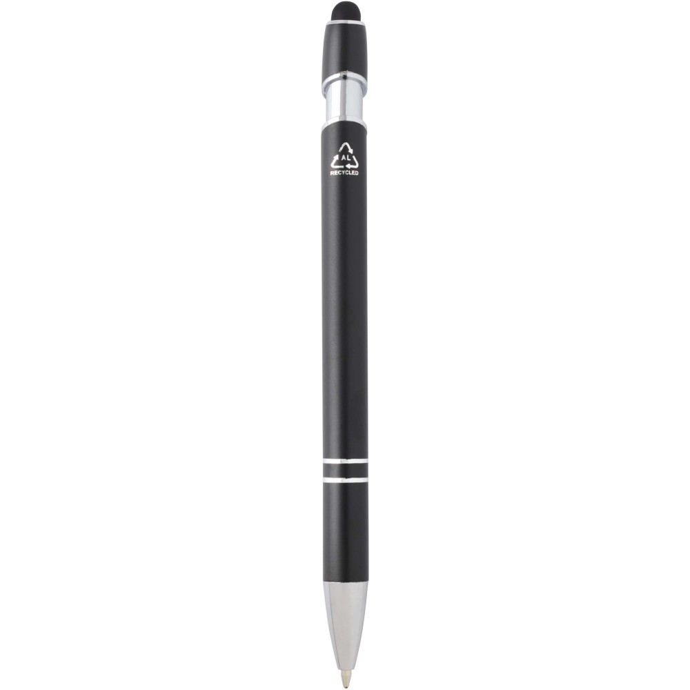 Kish golyóstoll ezüst színben. A toll teste újrahasznosított alumíniumból, az érintőceruza pedig szilikonból készült, így érintőképernyős eszközökhöz is használható. Az újrahasznosított alumínium csökkenti a hulladéklerakók terhelését, segít megőrizni a természeti erőforrásokat, és célja az üvegházhatású gázok kibocsátásának mérséklése. Tinta színe: kék. Íráshossz: 800 méter. Tollhegy mérete: 1,0 mm. Emblémázás: Gravírozás, Tamponnyomás