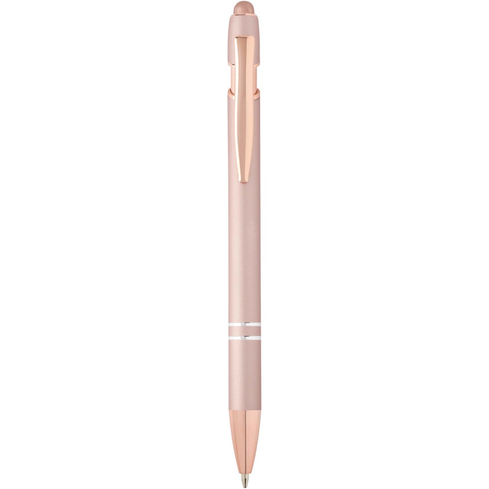 A Nanna golyóstoll rózsaarany bevonattal újrahasznosított alumíniumból készült tolltesttel és szilikon, érintőképernyős véggel rendelkezik. Az újrahasznosított alumínium csökkenti a hulladék mennyiségét a lerakókban, hozzájárul a természeti erőforrások megőrzéséhez és a károsanyag-kibocsátás mérsékléséhez. Tinta színe: fekete. Íráshossz: 800 méter. Tollhegy mérete: 1,0 mm. Emblémázás: Gravírozás, UV nyomtatás