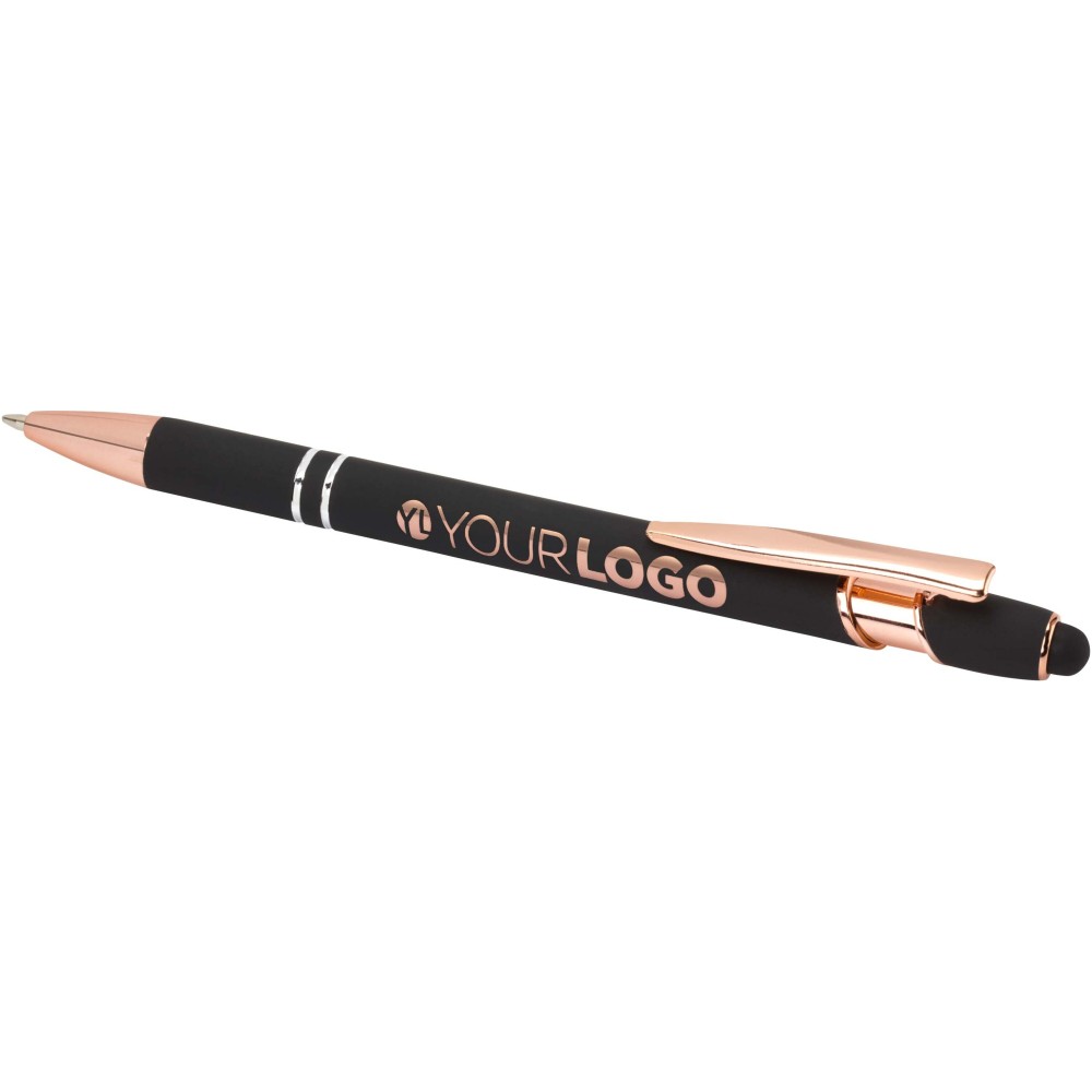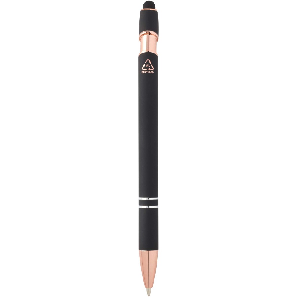 A Nanna golyóstoll rózsaarany bevonattal újrahasznosított alumíniumból készült tolltesttel és szilikon, érintőképernyős véggel rendelkezik. Az újrahasznosított alumínium csökkenti a hulladék mennyiségét a lerakókban, hozzájárul a természeti erőforrások megőrzéséhez és a károsanyag-kibocsátás mérsékléséhez. Tinta színe: fekete. Íráshossz: 800 méter. Tollhegy mérete: 1,0 mm. Emblémázás: Gravírozás, UV nyomtatás