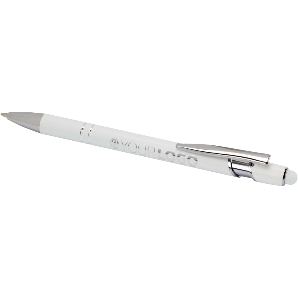 A Kish golyóstoll ezüst bevonattal újrahasznosított alumíniumból készült tolltesttel és szilikon, érintőképernyős véggel rendelkezik. Az újrahasznosított alumínium csökkenti a hulladék mennyiségét a lerakókban, hozzájárul a természeti erőforrások megőrzéséhez és a károsanyag-kibocsátás mérsékléséhez. Tinta színe: fekete. Íráshossz: 800 méter. Tollhegy mérete: 1,0 mm. Emblémázás: Gravírozás