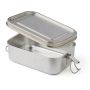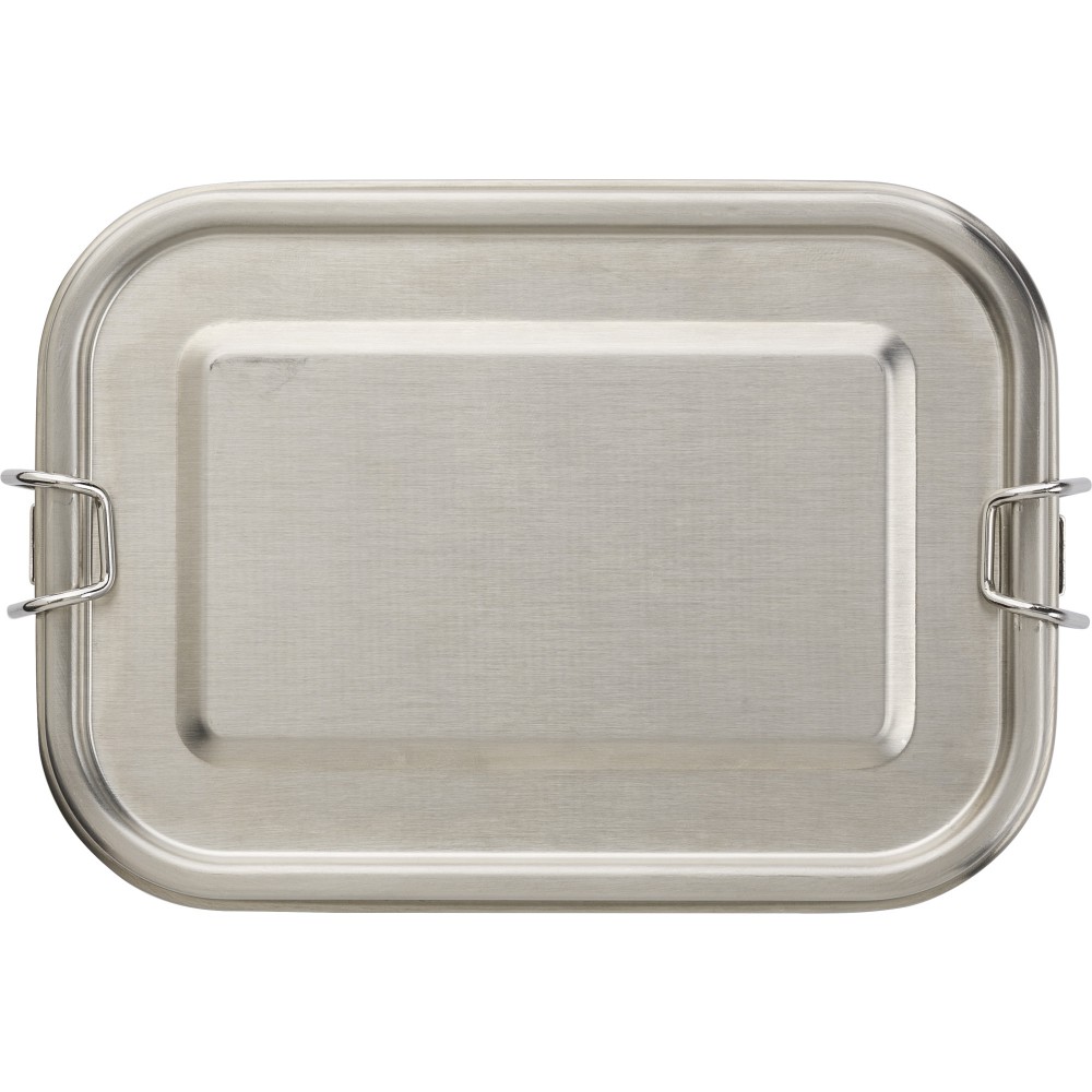 Rozsdamentes acél (s/s304) uzsonnásdoboz (750 ml) csatos zárással. Egyenként barna kartondobozba csomagolva. Emblémázás: Gravírozás