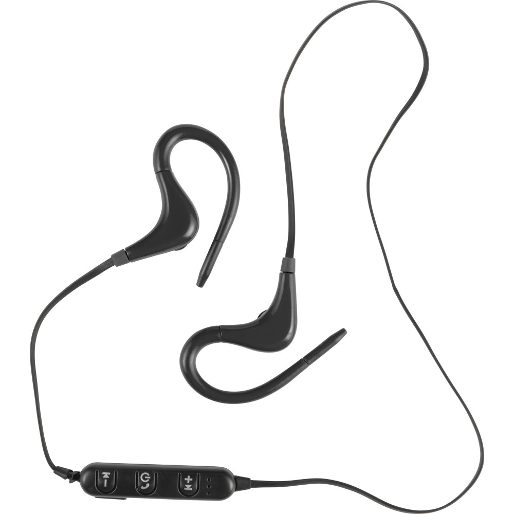 Vezeték nélküli fülhallgató, távvezérlővel és mikrofonnal a kihangosított hívásokhoz. A kábel hossza 55 cm. Csomagolás cipzáras tokban. A mikro USB töltőkábelt tartalmazza. ABS műanyag. Emblémázás: Tamponnyomás