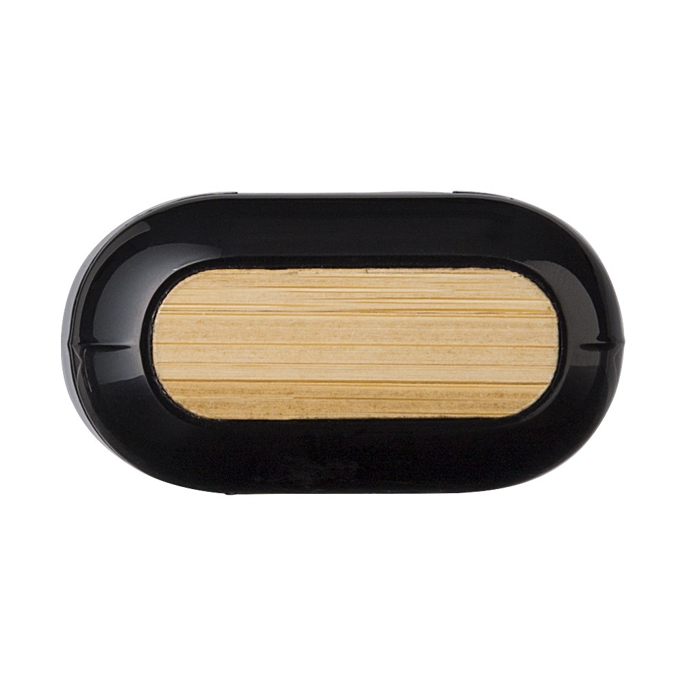 5.1 vezeték nélküli fülhallgató ABS anyagból, bambusz dekorációval a tetején. Fülhallgató kapacitása 30 mAh, tokja 200 mAh. 1 óra töltési idő, 6 óra lejátszási idő (zene), 4 óra lejátszási idő hívás funkcióban. Emblémázás: Tamponnyomás