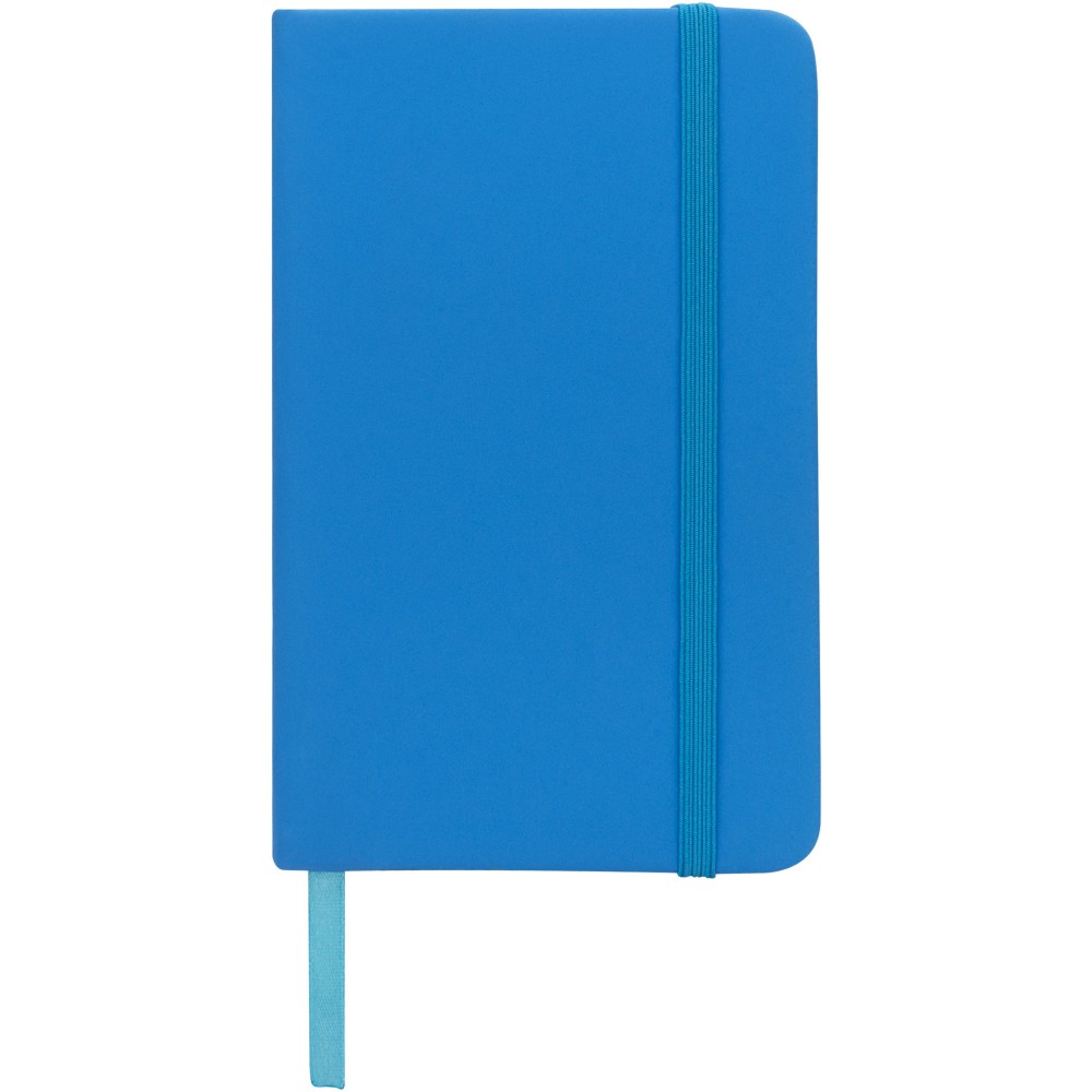 Spectrum A6 jegyzetfüzet színes fedéllel, jelölőszalaggal és gumipánttal, 96 vonalas lappal (60g/m2). PVC fedett karton. Emblémázás: Szitanyomás, Tamponnyomás, UV nyomtatás