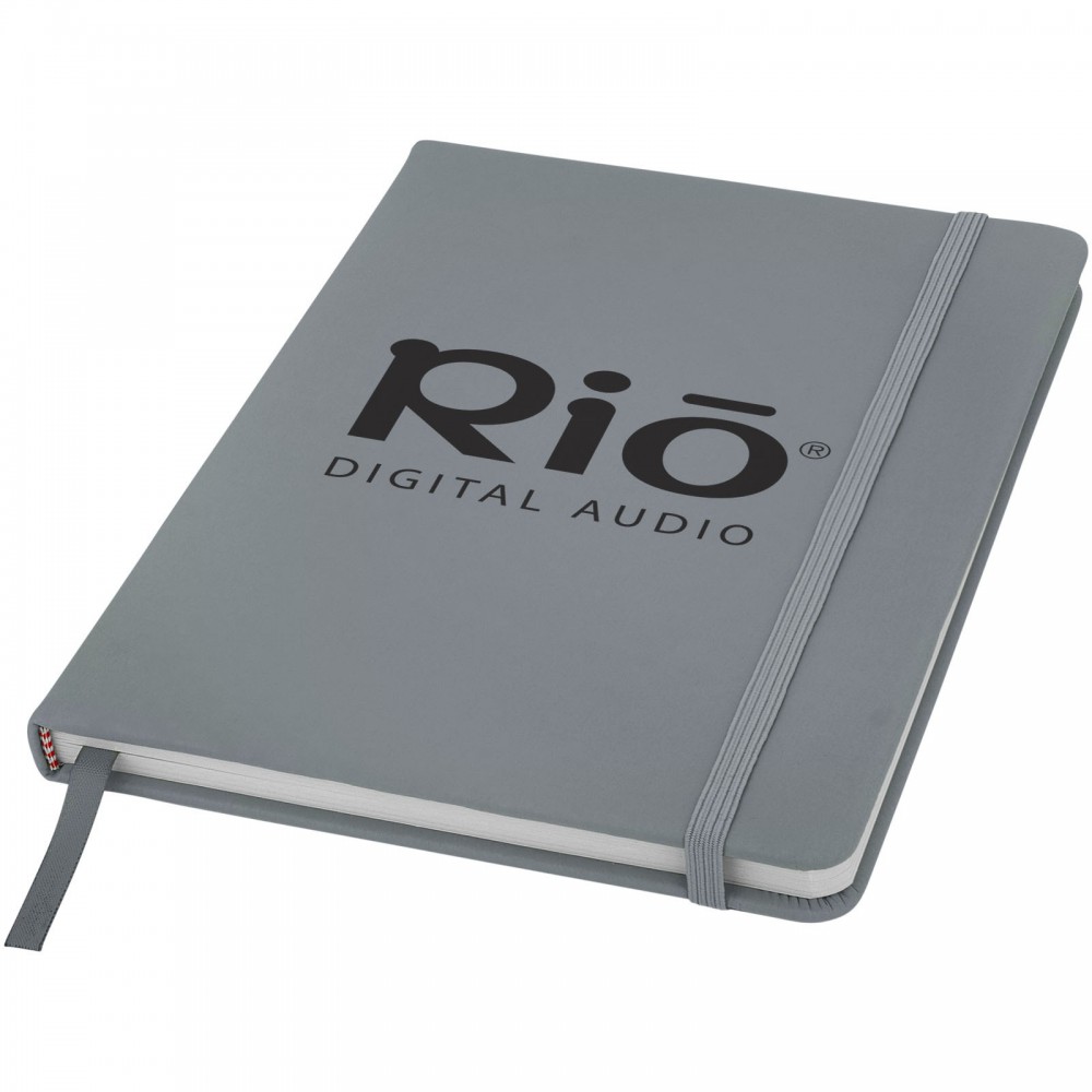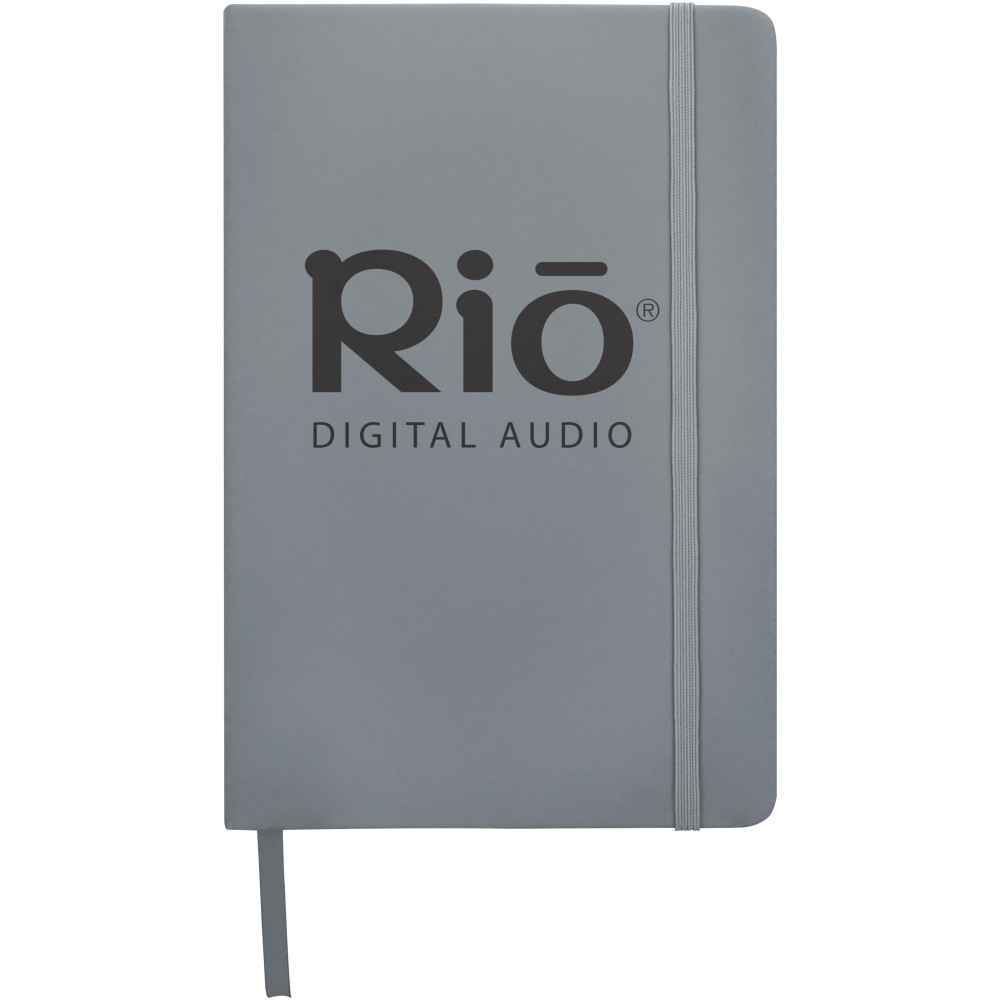 Spectrum A/5 jegyzetfüzet színes fedéllel, jelölőszalaggal és gumipánttal, 96 vonalas lappal (60g/m2). Emblémázás: Szitanyomás, Tamponnyomás, UV nyomtatás