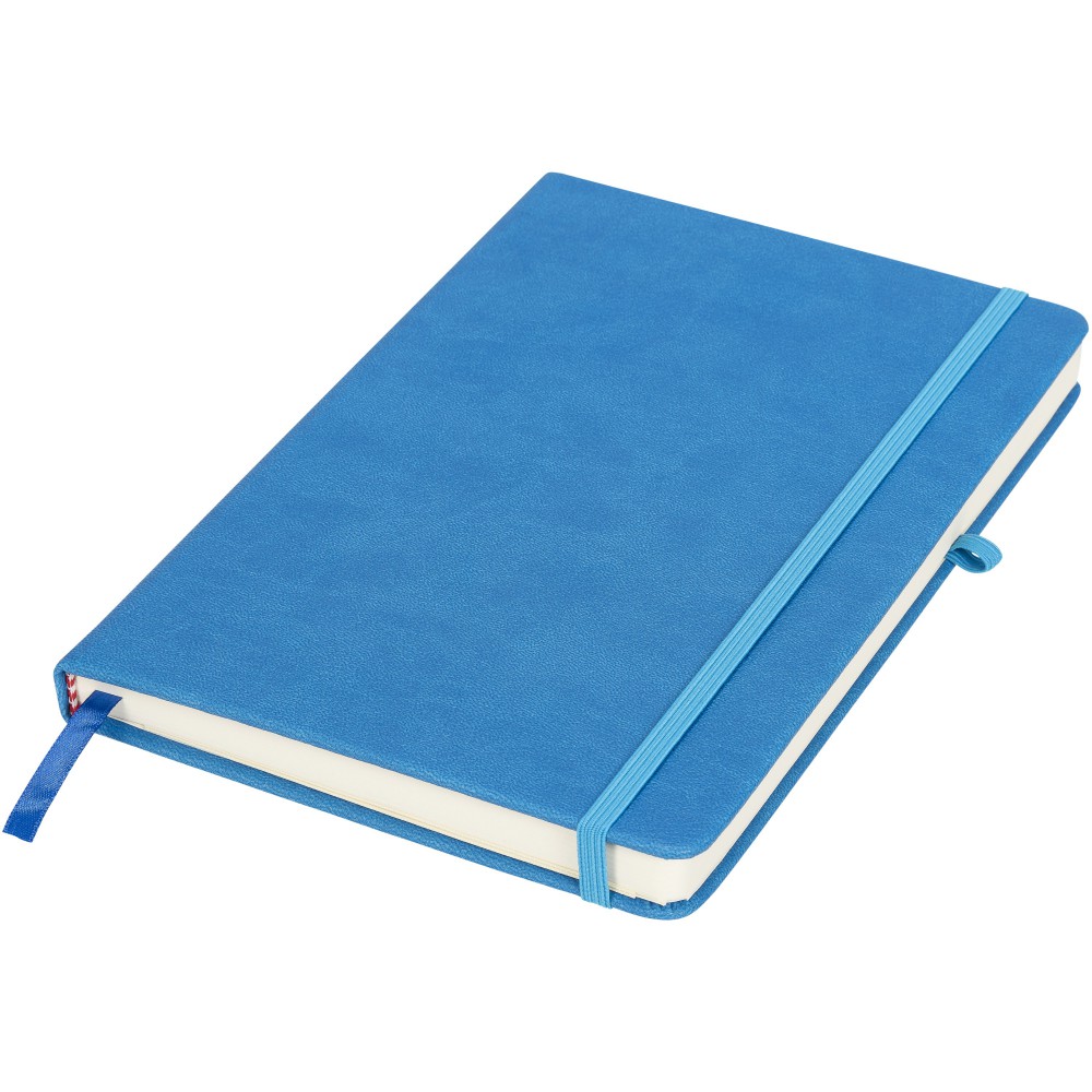 Színes füzet gumipánttal, könyvjelzővel, tollhurokkal. A hátsó borítóban tárolózseb. 128 krémszínű, vonalas lapot tartalmaz. Emblémázás: Szitanyomás, UV nyomtatás