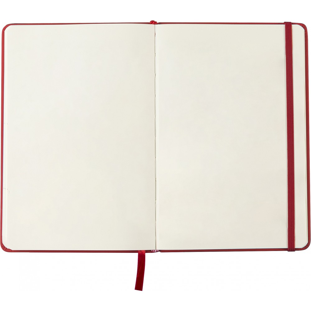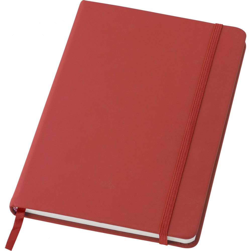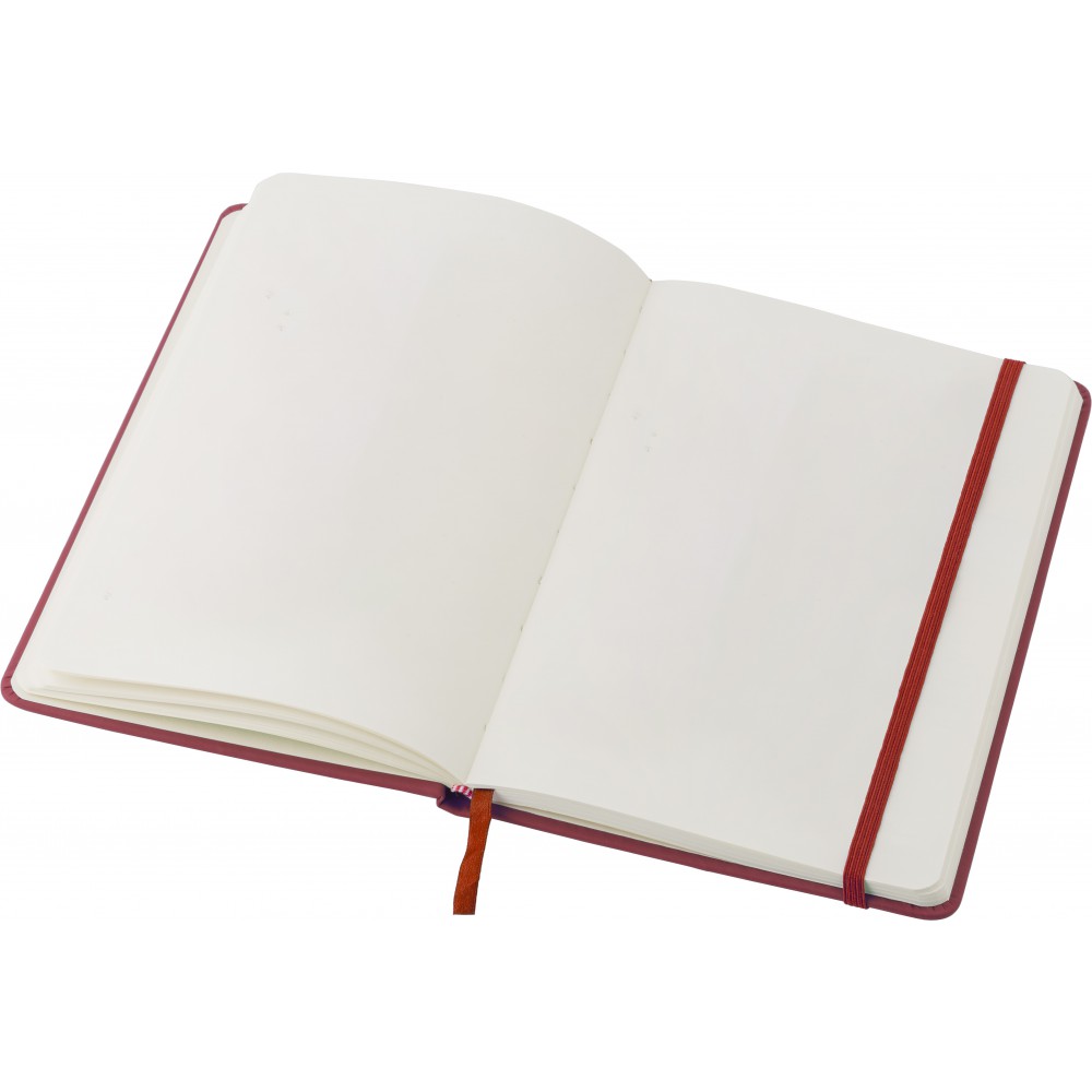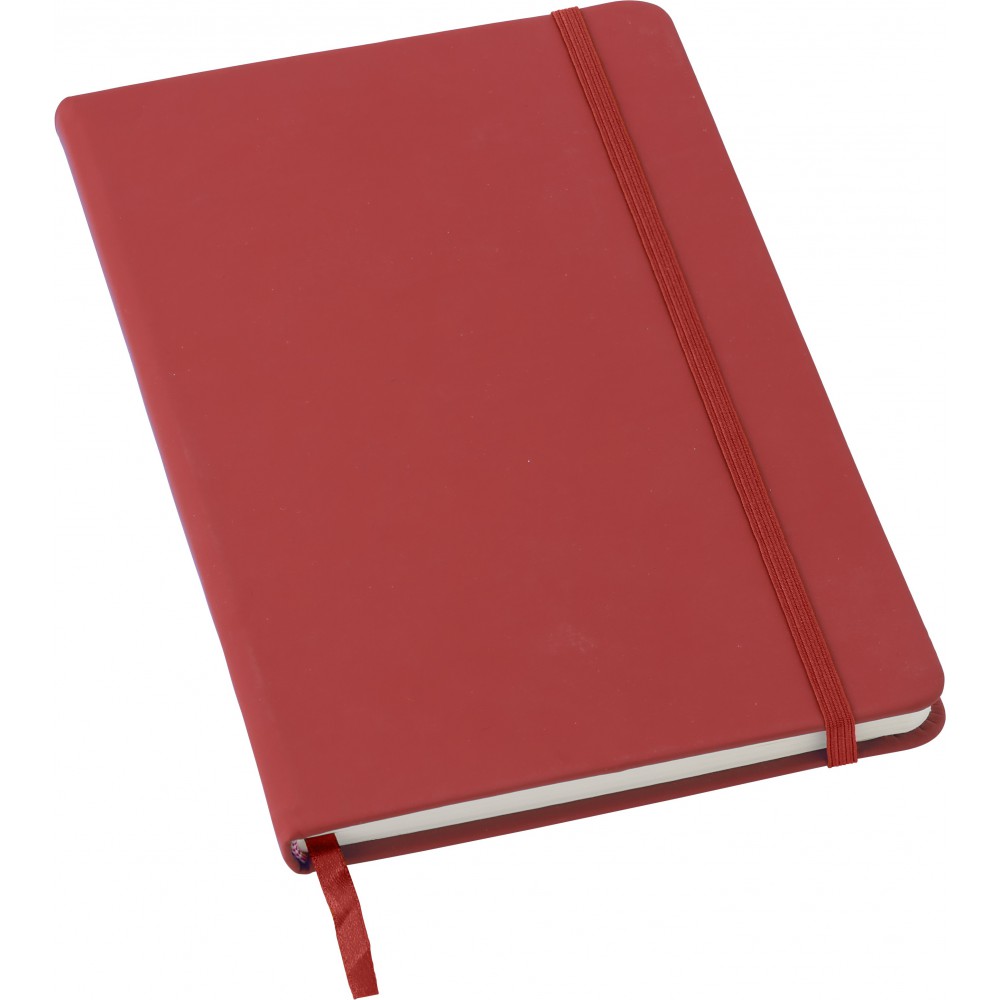 A5-ös jegyzetfüzet 96 üres lappal, gumis záródással és könyvjelzővel. PU. Emblémázás: Szitanyomás, Tamponnyomás, UV nyomtatás