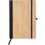 Jegyzetfüzet bambusz borítóval, 96 vonalas lappal és gumis záródással. kb. A5-ös méret. PU. Emblémázás: Tamponnyomás
