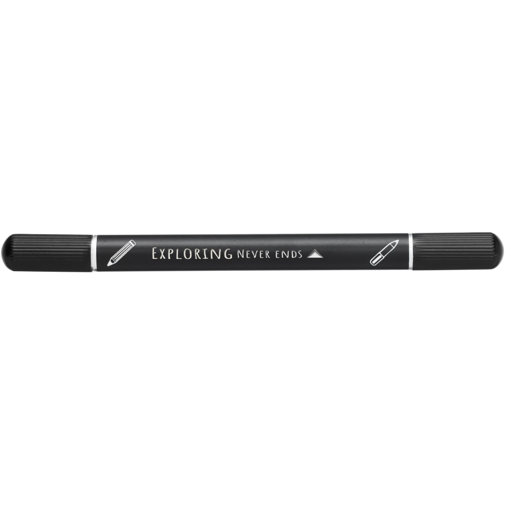 Az RCS tanúsítvánnyal rendelkező Skribi toll- és jegyzetfüzetkészlet részben újrahasznosított poliészterből készül, így fenntartható választás, mivel segít csökkenteni az új nyersanyag felhasználását. Kék tintával ellátott golyóstollat és 80 krémszínű, vonalas lapot tartalmaz, amelyek 80 g/m2 súlyú, fenntartható forrásból származó, újrahasznosított papírból készültek. A toll írási hossza 1000 méter. Emblémázás: Szitanyomás