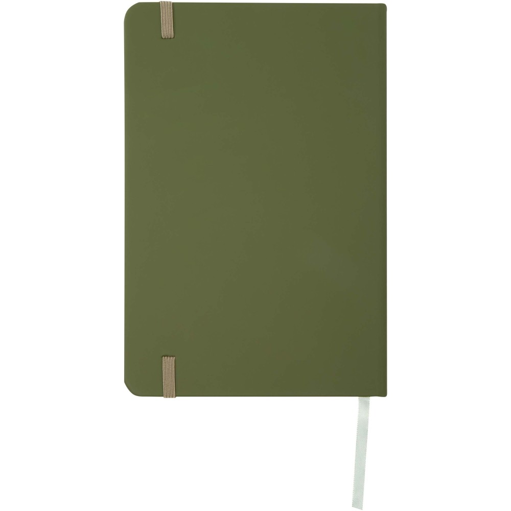 A5 jegyzetfüzet színben hozzáillő gumipánttal és jelölőszalaggal. 96 lapos.( (60g/m2). Sima lapok. Emblémázás: Szitanyomás, Tamponnyomás, UV nyomtatás