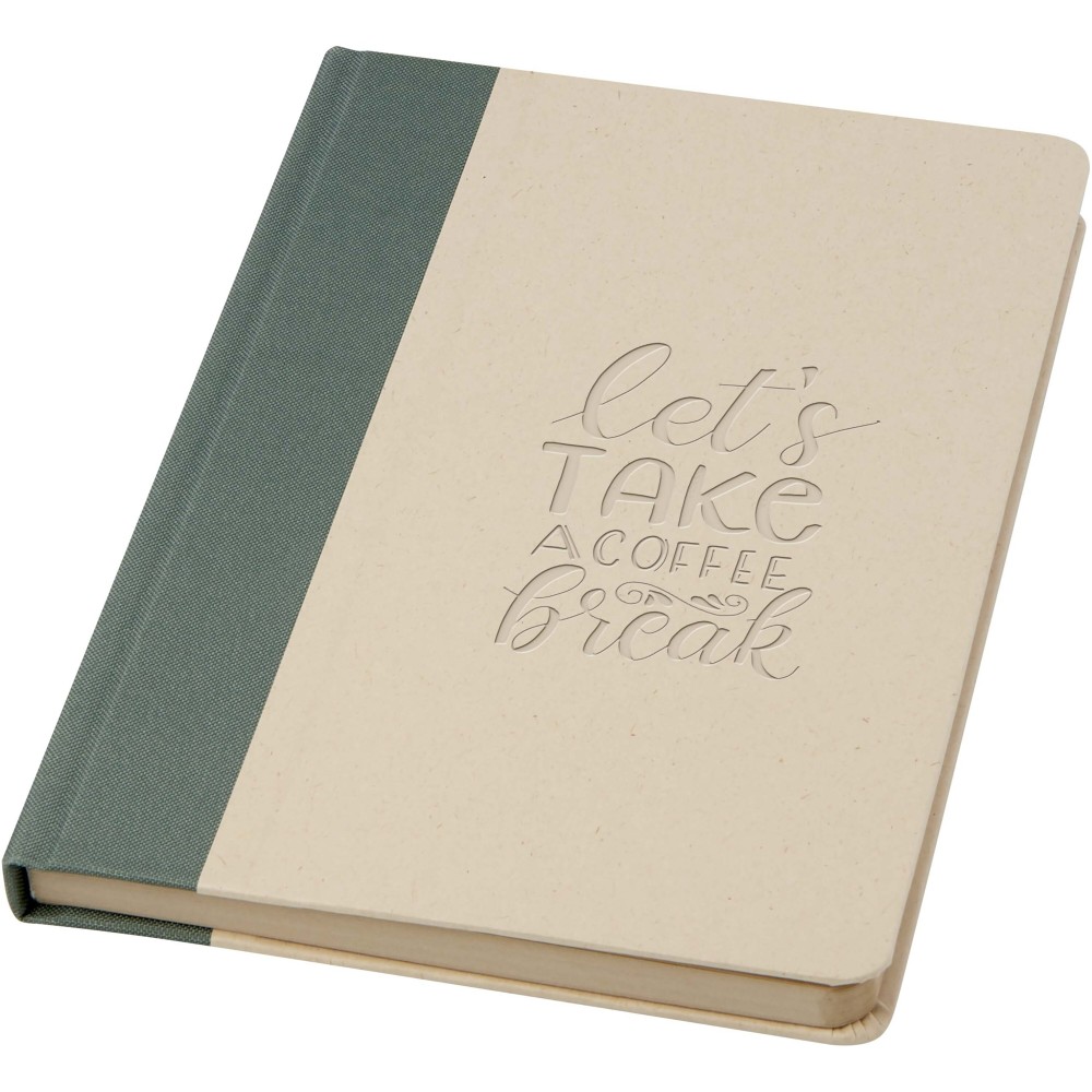 A Liliana A5 keménytáblás jegyzetfüzet lekerekített sarkokkal és 80 vonalas, 90 g/m2-es lapokkal rendelkezik. A borító RPET-ből és cukornádból készült. Emblémázás: Szitanyomás