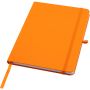 A Teak A5 méretű, újrahasznosított karton keménytáblás jegyzetfüzet lekerekített sarkokkal nemcsak irodai alapdarab, hanem kiváló lehetőség a márka népszerűsítésére is. A jegyzetfüzet 96 darab 70 g/m2-es vonalas lapot tartalmaz és puha tapintású borítóval rendelkezik. Beépített tolltartó hurokkal, rugalmas zárópánttal és könyvjelzővel van ellátva. Emblémázás: Tamponnyomás, UV nyomtatás