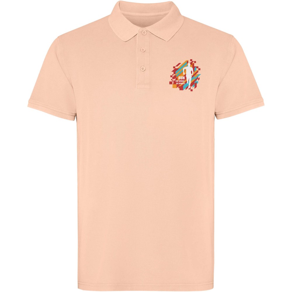 Rövidujjú, uniszex piképóló, amely koptatott (acid-wash) felületkezeléssel készült az egyedi megjelenés érdekében. A gallér és ujjpasszé 1x1 bordás kötésűek, az oldalán sliccelve a kényelmes viseletért. A modell színazonos fedőöltésekkel és háromgombos gombolópanellel rendelkezik. 100% pamut, 200 g/m2. Emblémázás: Hímzés, Szitanyomás