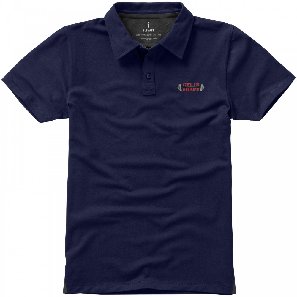 Normál szabásvonal. A férfi modell 3, a női 4 gravírozott, színben illeszkedő gombbal. Az oldalsliccben kontrasztos színű V-betét. Rejtett öltések. Tónusos logónyomat hátul. Kontrasztos színű félhold nyakbetét. Szatén szalagerősítés a nyakrészen. Saját anyagából készült gallér. Dupla piké, 95% pamut és 5% elasztán. 200g/m2. Emblémázás: Hímzés, Szitanyomás