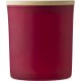 Üveggyertya növényi alapú viasszal és bambusz fedővel. A gyertya főleg növényi viaszt (karnaubaviaszt) tartalmaz, égési ideje körülbelül 33 óra. Négy illat az üveg színétől függően: fahéj (piros), vanília (fehér), szantálfa (fekete) és jázmin (zöld). Egyenként, fehér papírpalástba csomagolva. Emblémázás: Gravírozás, Tamponnyomás, UV nyomtatás