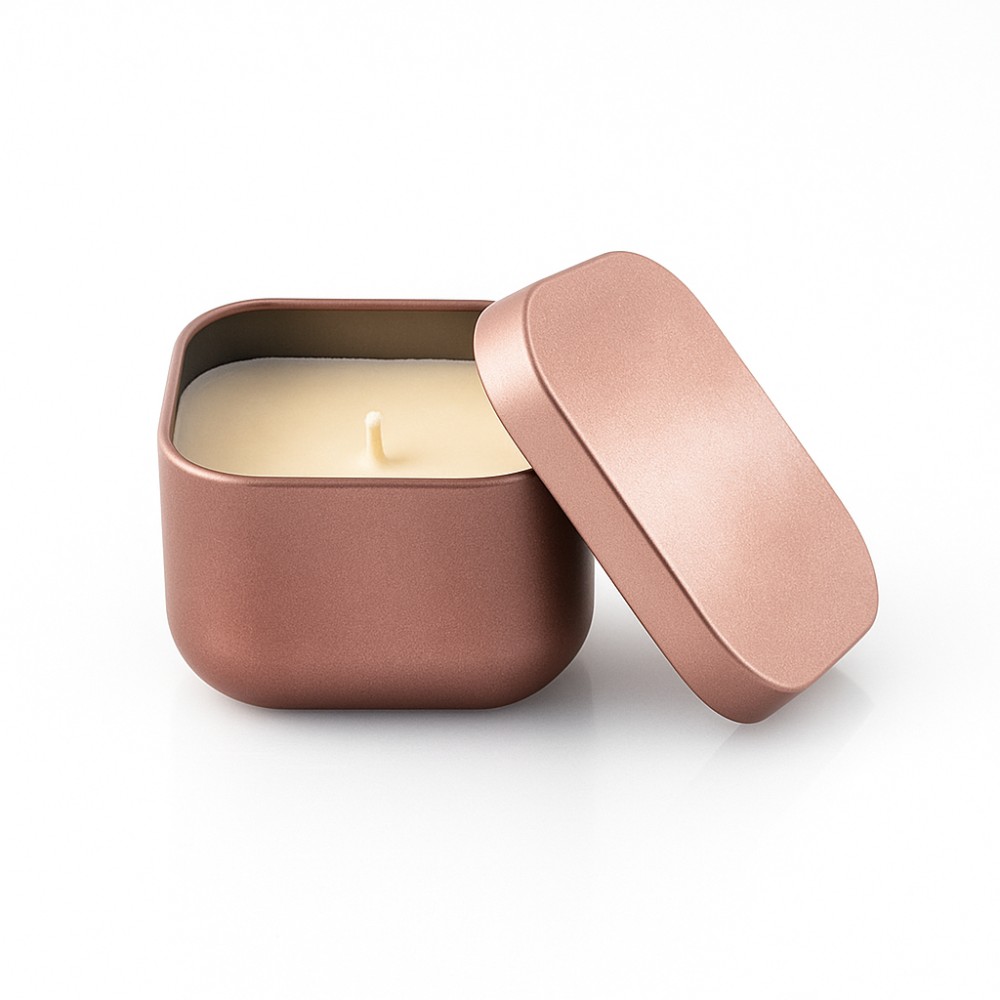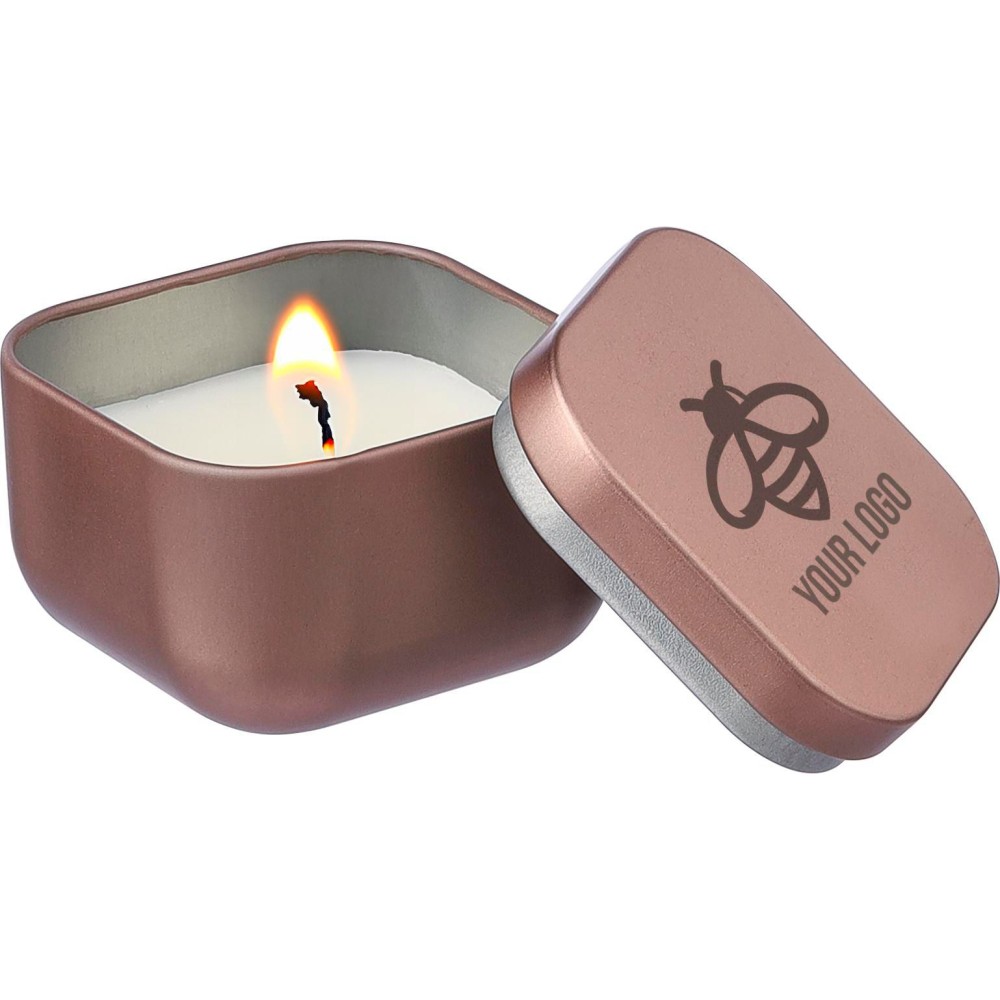 Gyertya vanília illattal, fém tégelyben, fém fedéllel. 40 gramm viaszt tartalmaz. Égési idő kb. 10 óra. Egyenként barna kartondobozba csomagolva. Emblémázás: Gravírozás, Tamponnyomás