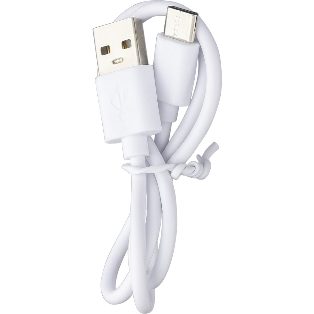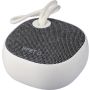 Újrahasznosított ABS és rPET anyagból készült vezeték nélküli hangszóró vékony nejlon hordozópánttal. 3 W teljesítmény, 300 mAh akkumulátor, 5.3-as vezeték nélküli technológia és 10 méteres hatótávolság. 30 cm-es fehér USB-C töltőkábellel. Az anyagon rPET logóval, az oldalán pedig újrahasznosított ABS logóval. Egyenként csomagolva, barna kartondobozban. Emblémázás: Tamponnyomás
