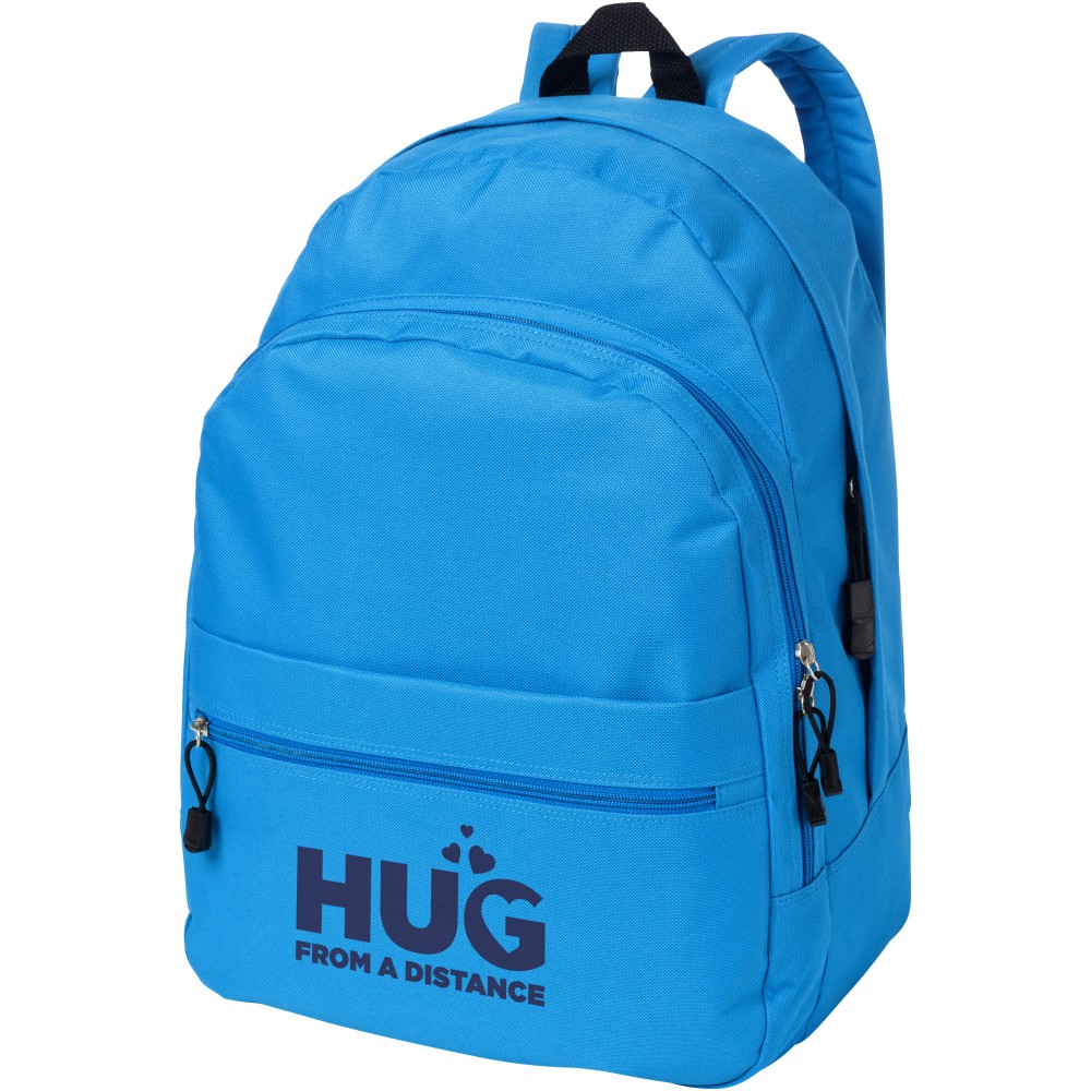 A kényelmes Trend hátizsák nyerő a promóciós hátizsákok között. A divatos kialakítású táska négy rekesszel rendelkezik: két cipzáras rekesszel, egy elülső cipzáras zsebbel és egy tépőzáras elülső zsebbel, így bőséges helyet kínál nagy és kis tárgyak tárolására egyaránt. A termék 600D poliészterből készült. Emblémázás: Hímzés, Szitanyomás