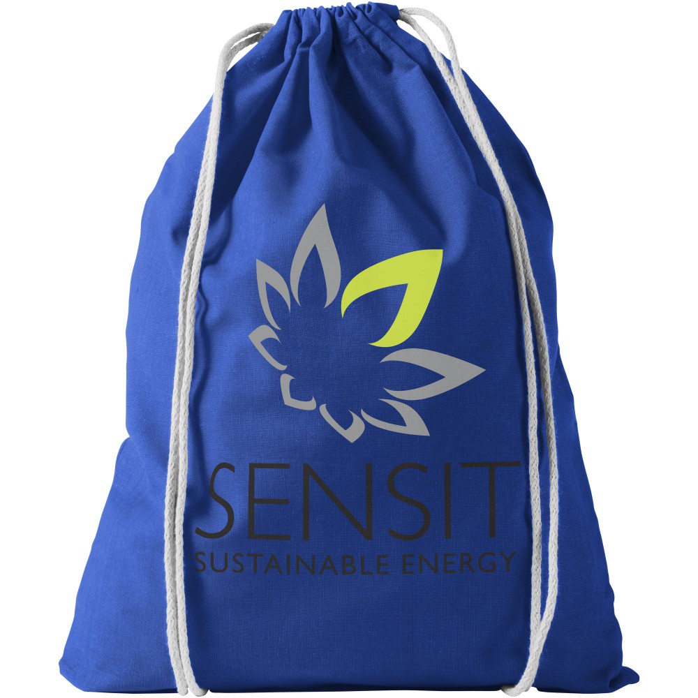 Húzózsinórral zárható nyitott fő rekesz. 100 g/m2 pamut. Emblémázás: Szitanyomás